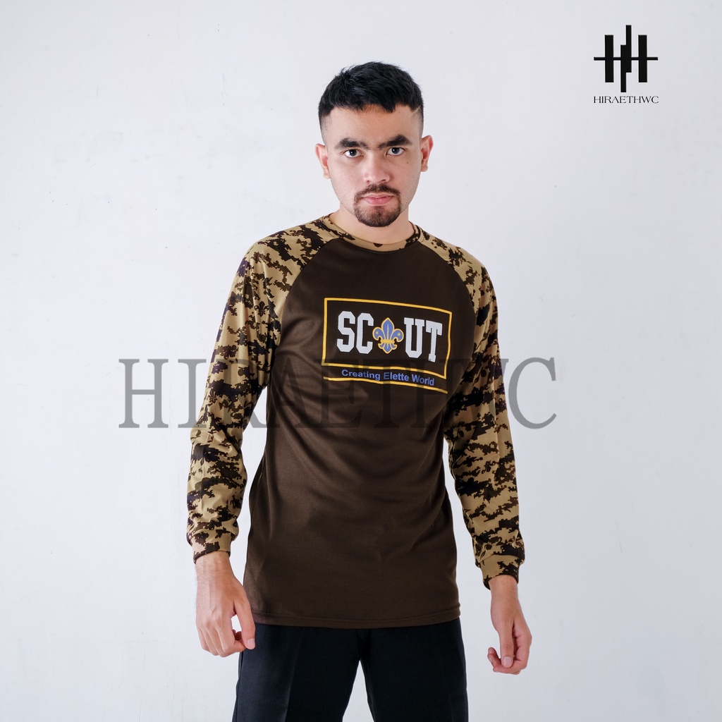 Baju Kaos Loreng Pramuka Katun Scout Raglan Sablon Bdu Lapangan Pdl Lengan Panjang Murah