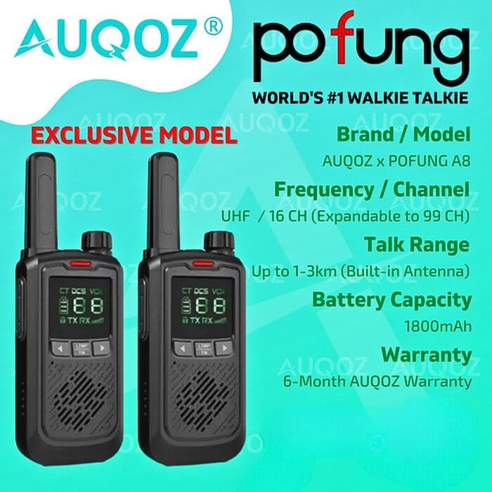 AUQOZ x Pofung A8 Walkie Talkie 2 Pcs - Radio HT 888s Pro Max 99CH HT Murah HT Antena Led