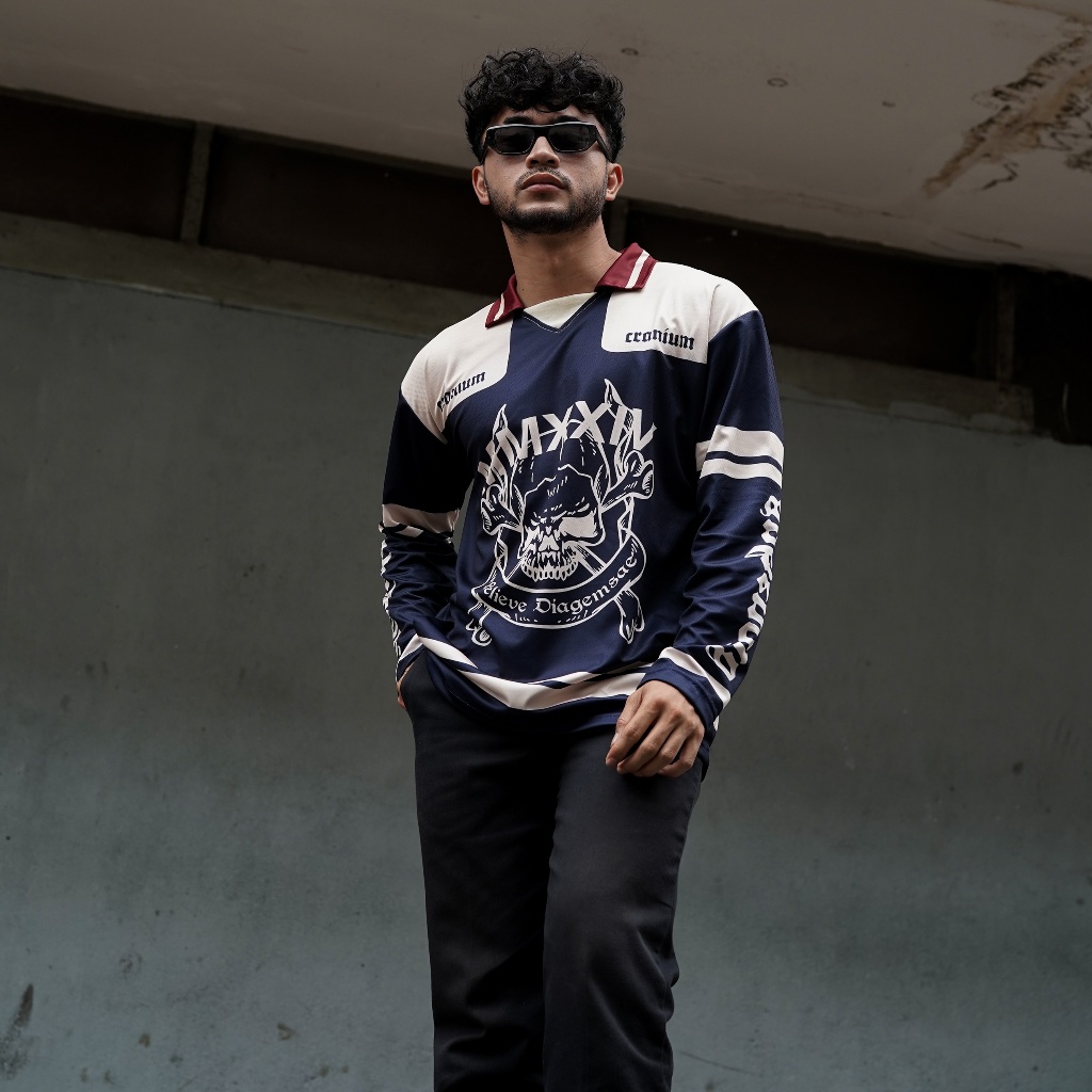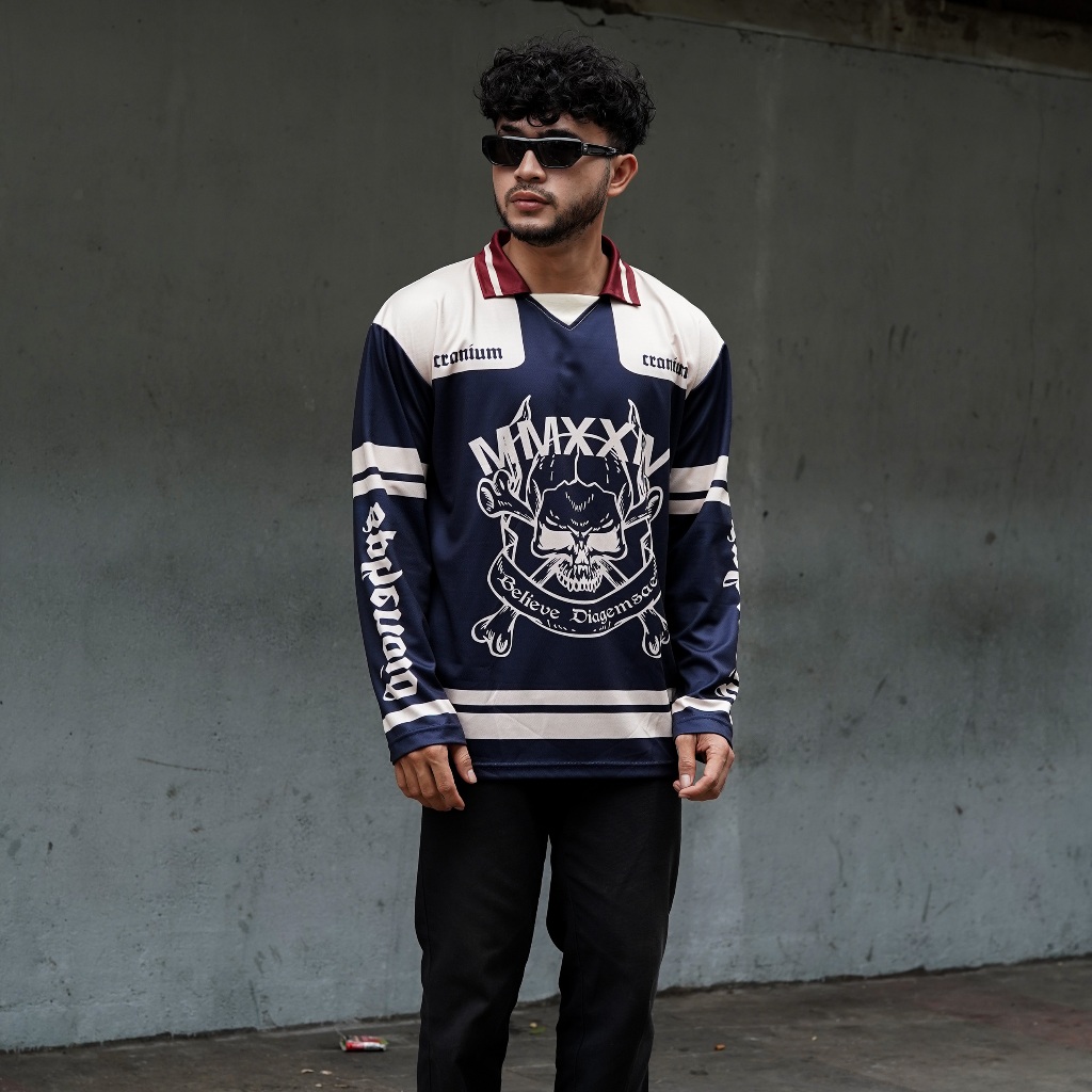 BELIEVEDIAGEMSAE - Oversized Jersey Longsleeve Full Print Skull Navy Cream