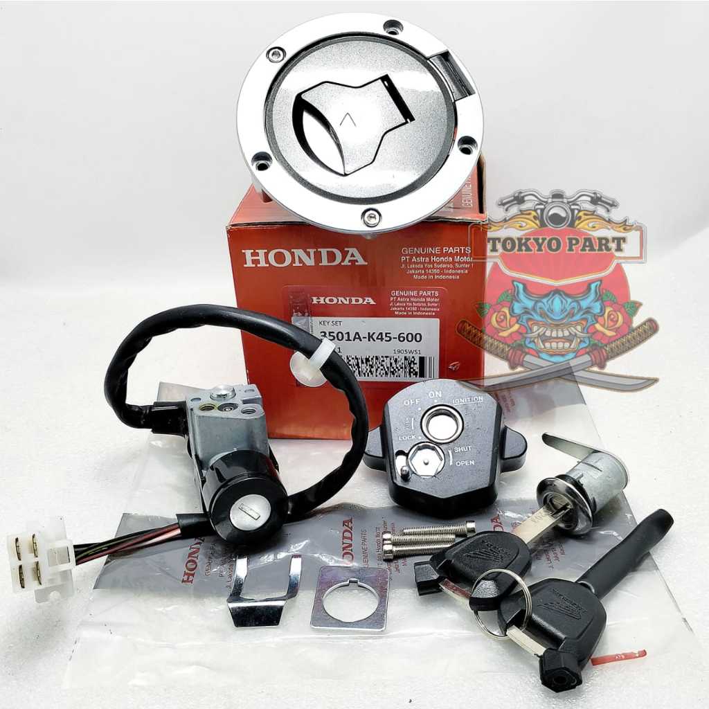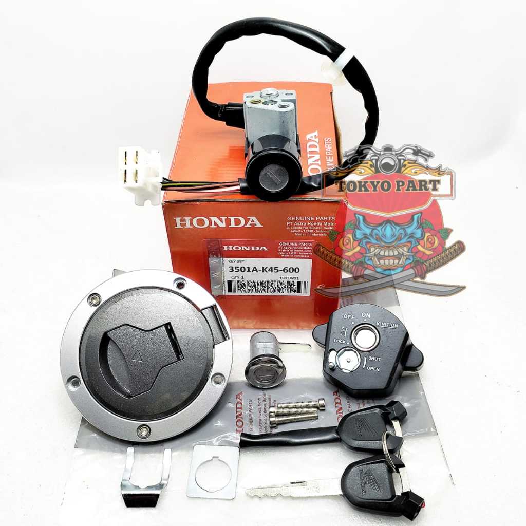 KUNCI KONTAK A55Y / KEYSET SUDAH TERMASUK TUTP TANKY, KUNCI JOK KONCI KONTAK ORI HONDA K45 KUALITAS ASLI ORIGINAL AHM PR