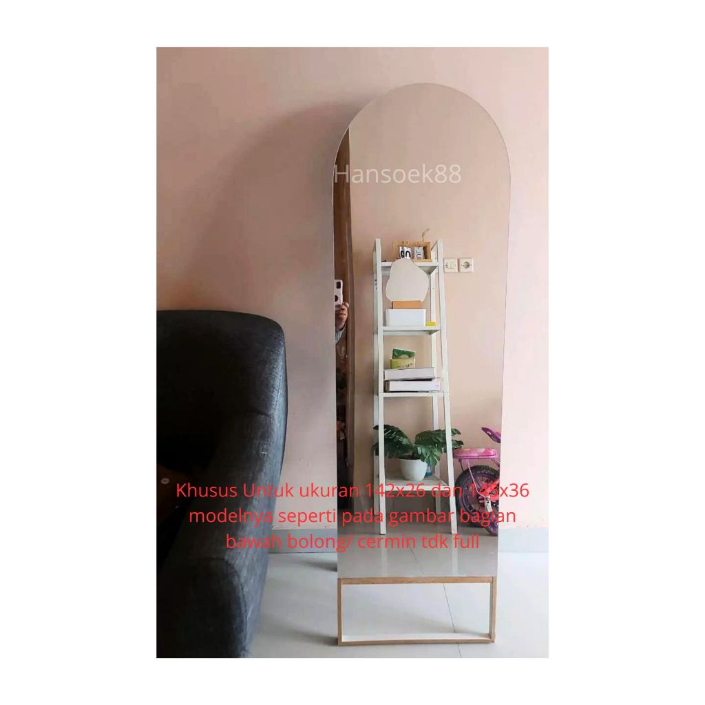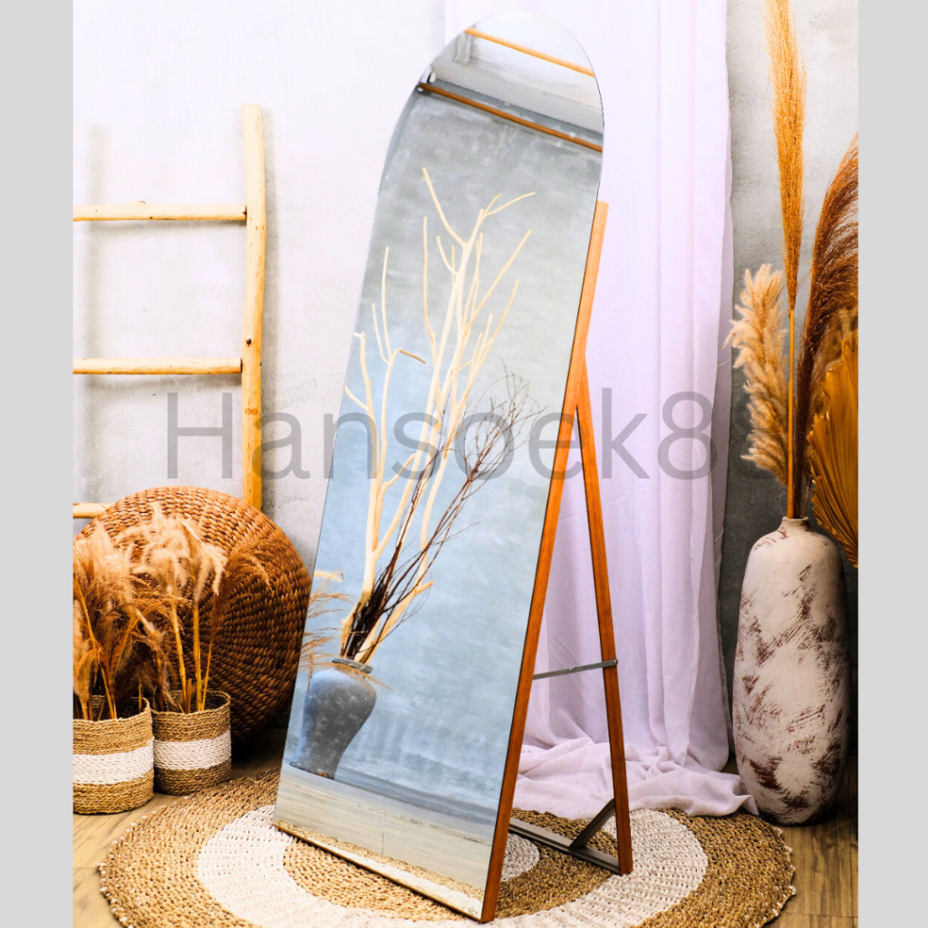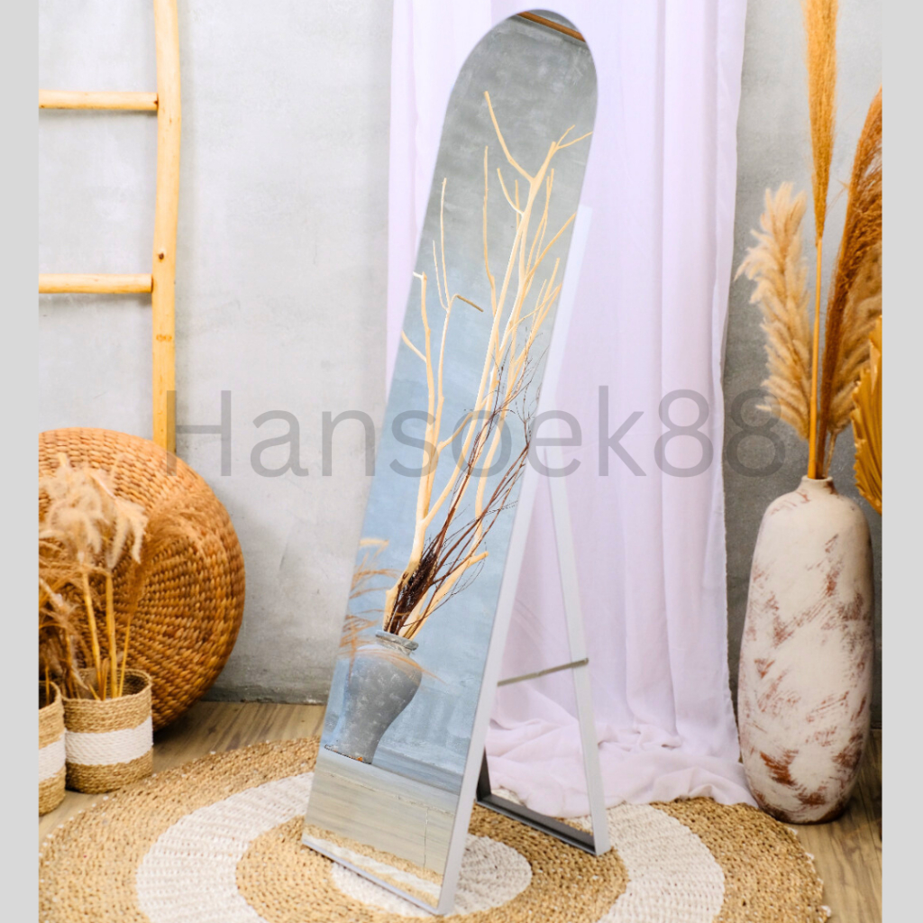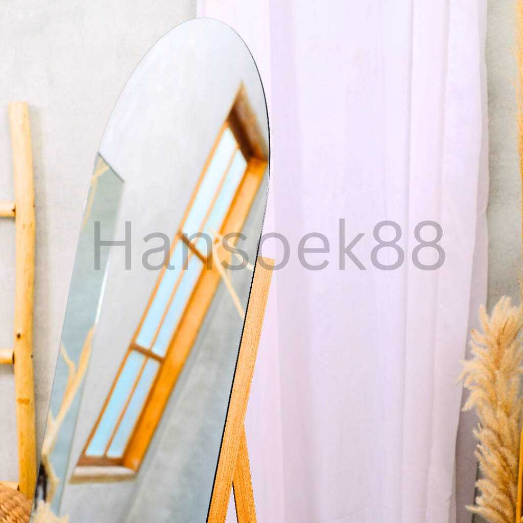 STANDING MIRROR FULL BODY OVAL SETENGAH LINGKARAN TANPA BINGKAI MULTIFUNGSI