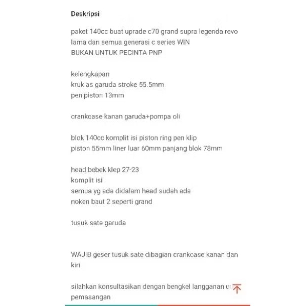 Paket lengkap bor up borup bore up 140cc c series grand c70 c800 c700 prima legenda supra revo lama win set krengkes pom