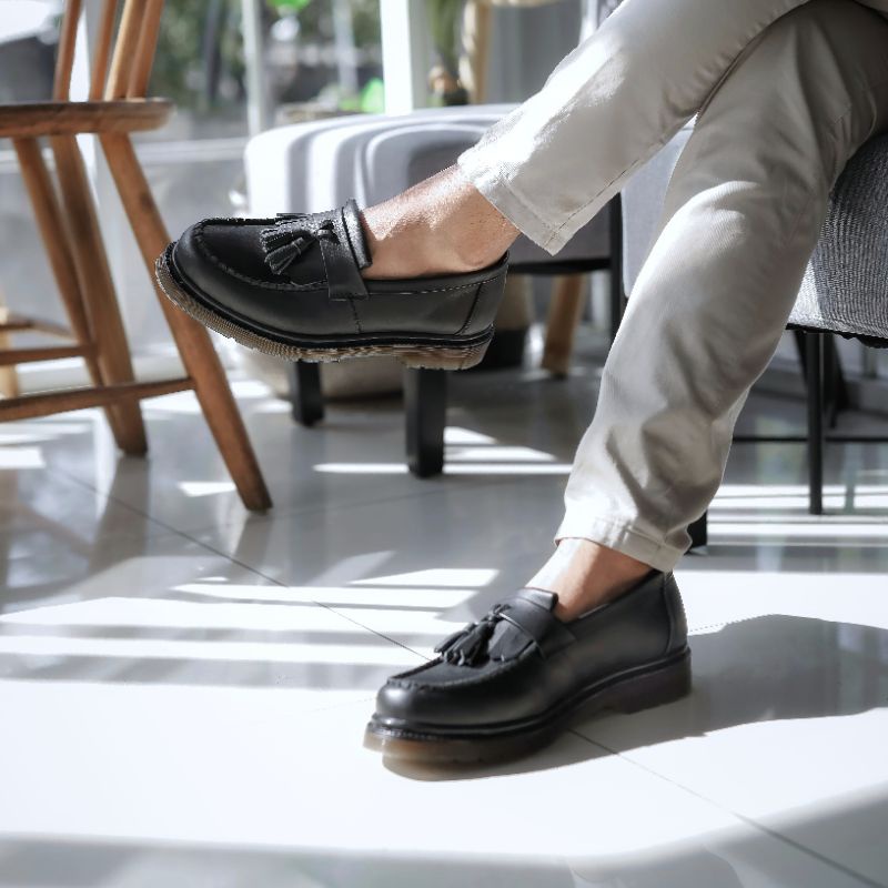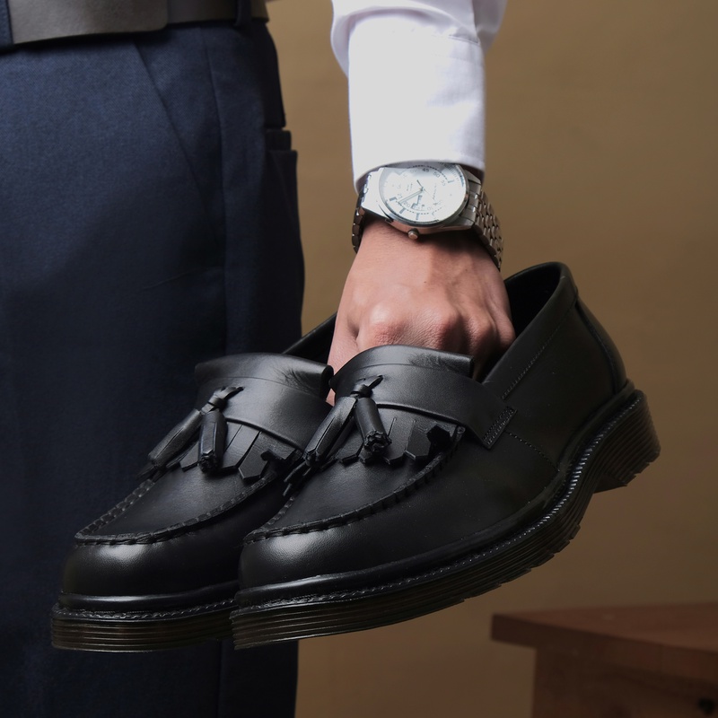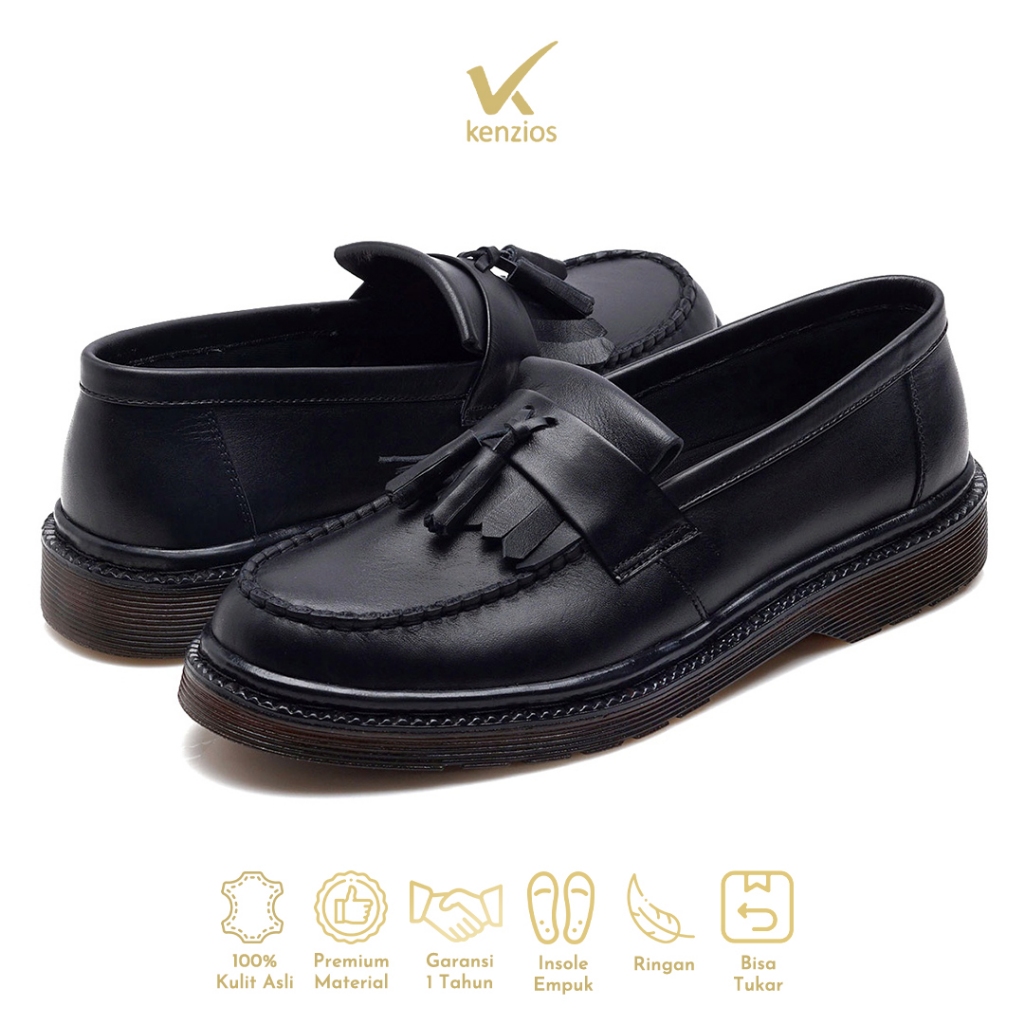 Kenzios Sepatu Formal Pria Kulit Asli Gates Black Solid Series