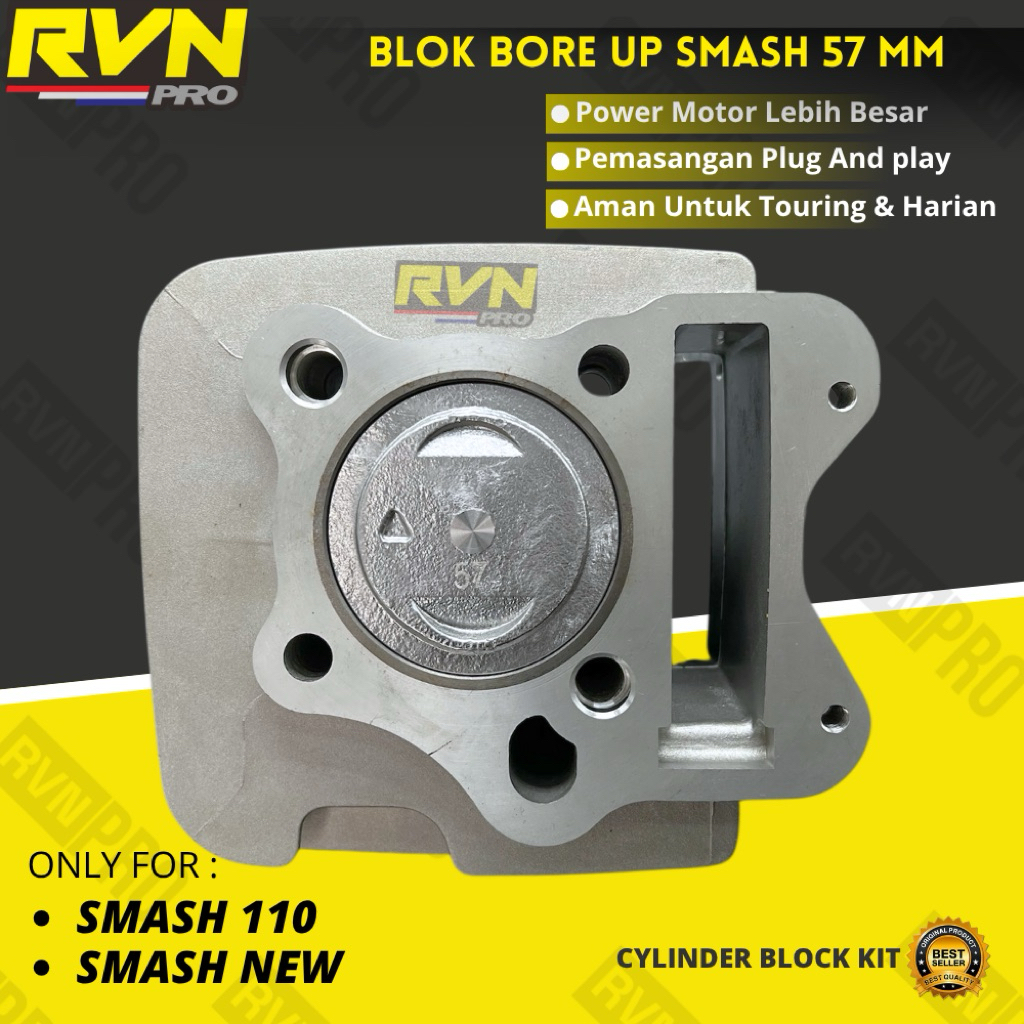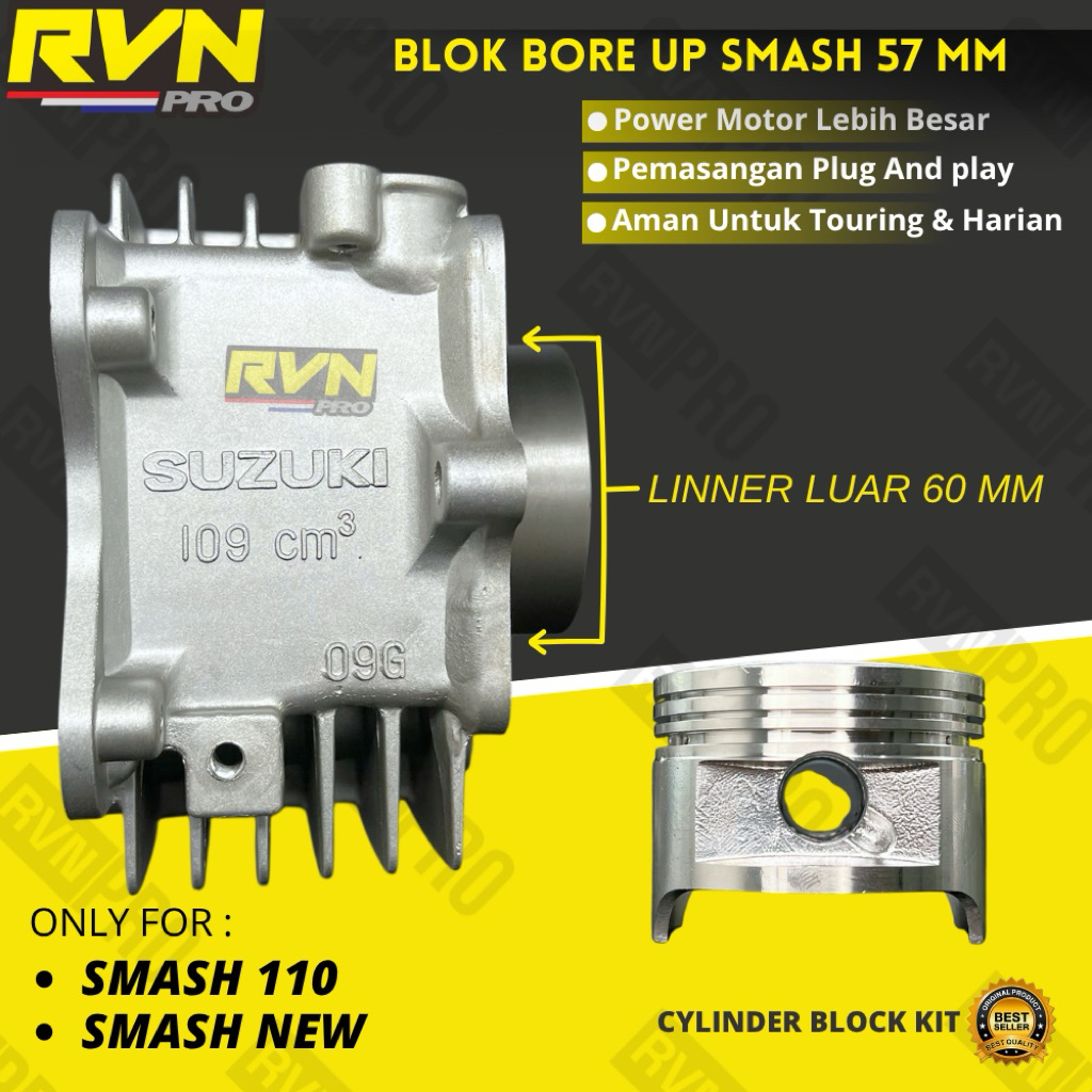 BLOCK SEHER BORING BLOK SEHER BELOK SEHER BORE UP SUZUKI SMASH 110 SMASH NEW 57 MM 57MM ORIGINAL RVN PLUS PISTON KIT RIN