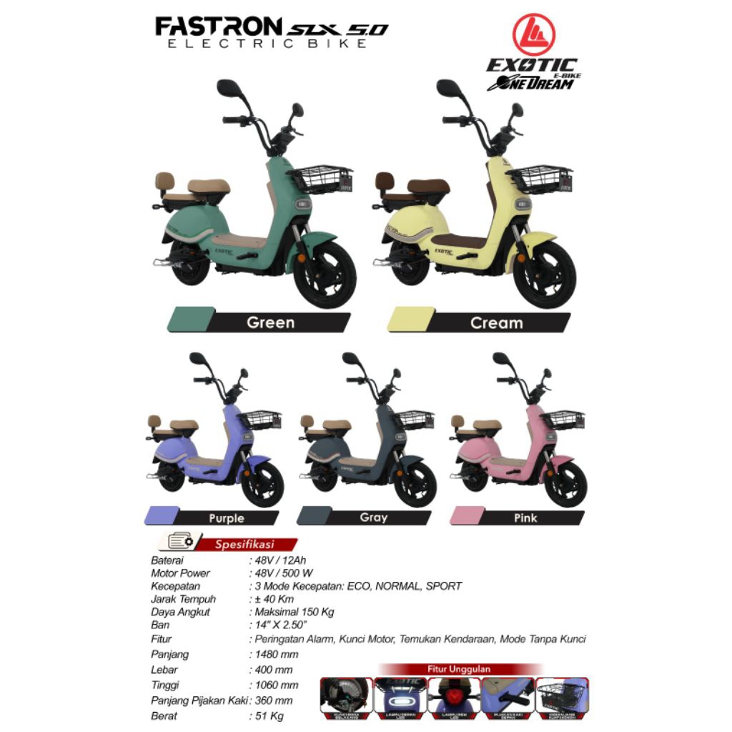 SEPEDA LISTRIK EXOTIC VELOCE V7 / EXOTIC VELOCE V3 / ION CUBE TC600 / EXOTIC EV 928 / EXOTIC X610