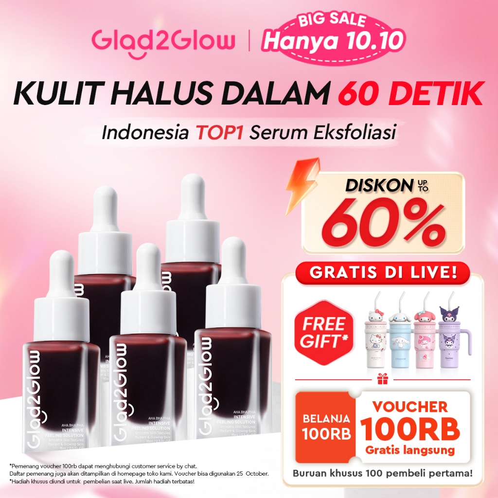 [Mall] Glad2Glow Peeling Solution Serum Eksfoliasi Wajah 60S Menghaluskan Kulit Anda AHA BHA PHA Intensive serum vitamin