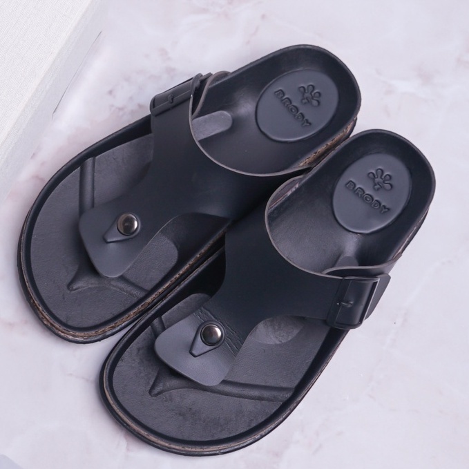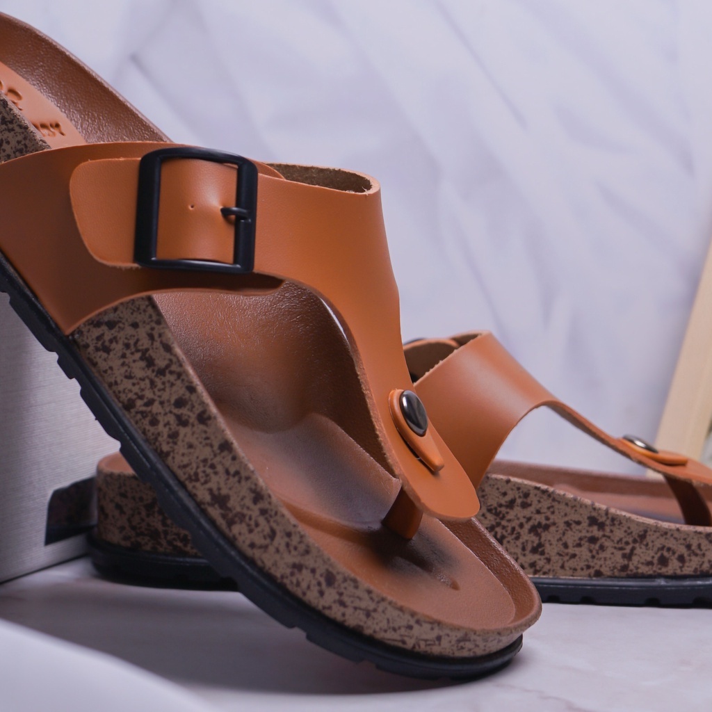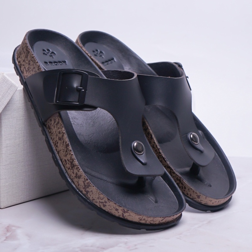 Sandal Pria Jepit Casual Model Puyuh Birken BRODY BOXER Sendal Laki laki Japit Gesper dua 2 Kasual Sol Kulit Rumahan Size