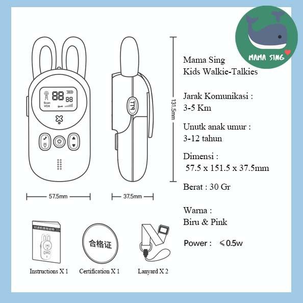 Mainan Anak Walkie Talkie Berkualitas + Tali - Ori Kids Bunny Edukasi - Spesifikasi