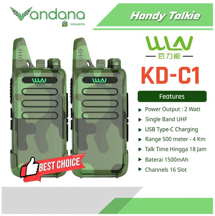 HT Walkie Talkie WLN KD-C1 (Isi 2 Unit) - Loreng Hijau - Green - Non Headset