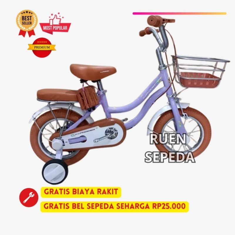 Sepeda Anak Perempuan Roda Empat Mini Phoenix 12 16 18 Inch Sepeda Anak Premium Usia 2th 4th 6th