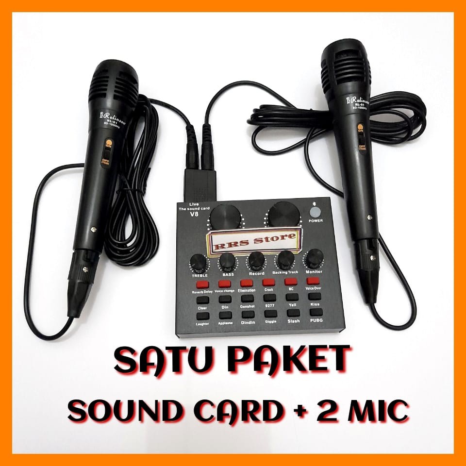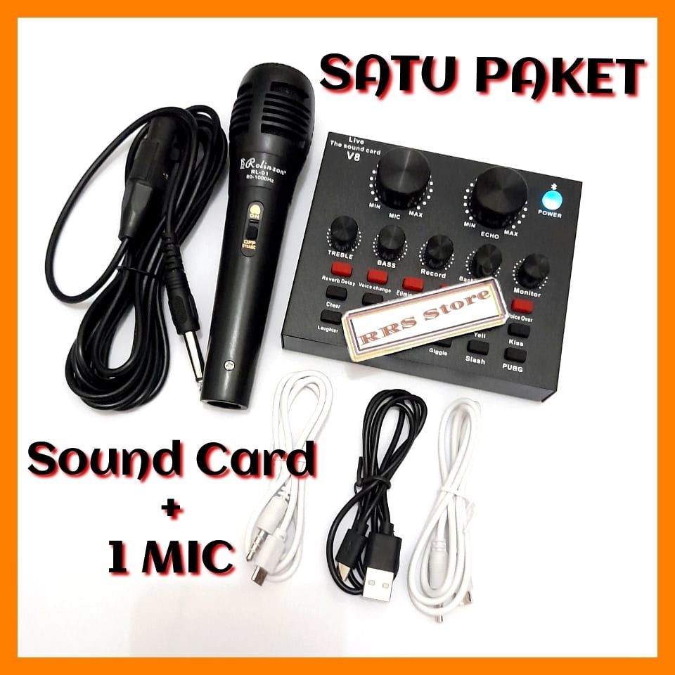 ALAT KAROKE SATU PAKET Mixer mini mic MURAH KUALITAS BAGUS sondcad sonkad Soundcard Broadcast Microphone V8