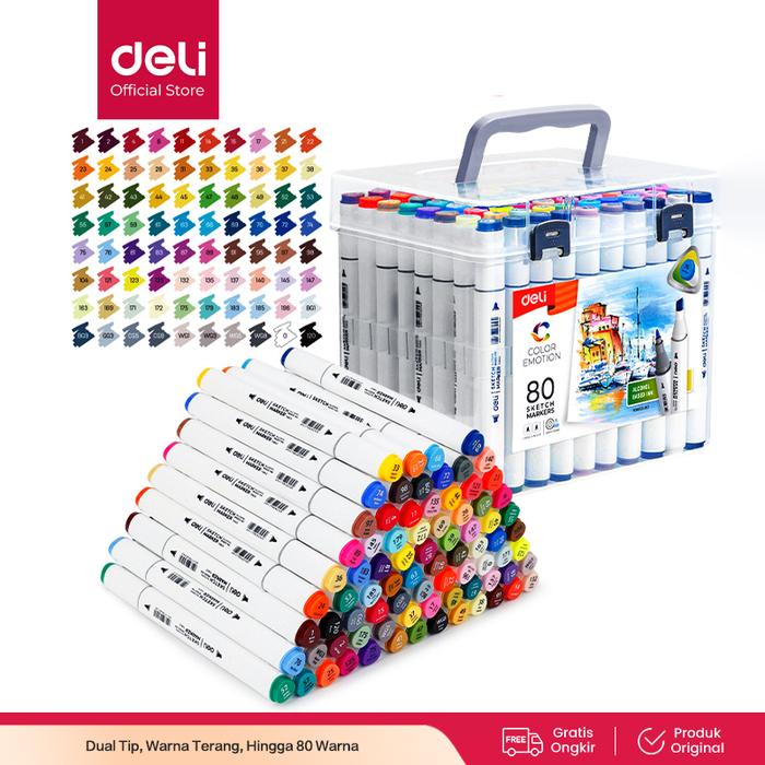 FLASH SALE SPIDOL SKETSA SKETCH MARKER 24 HINGGA 80 WARNA DUAL TIP E70803 24 WARNA