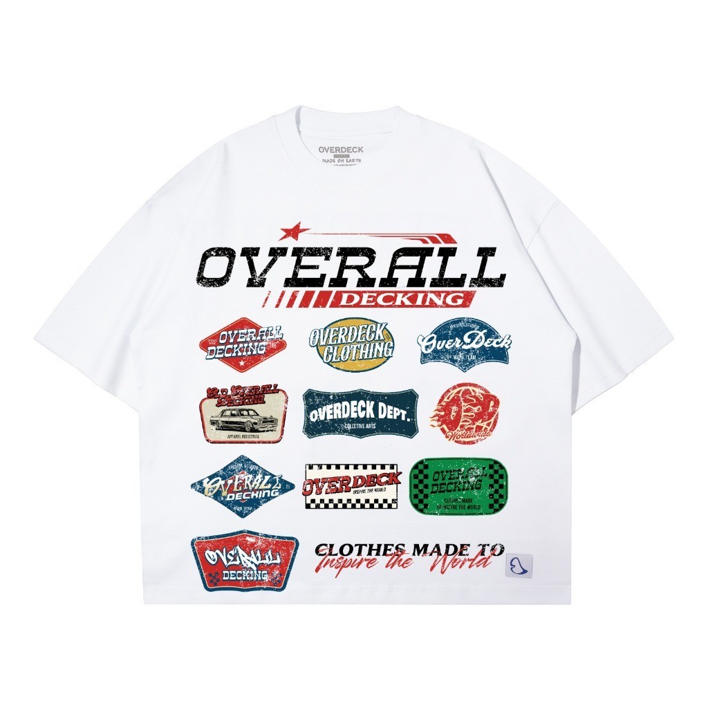 OverallDecking Boxy Cut T-Shirt cotton 20s Kaos Pria Vintage Logo White