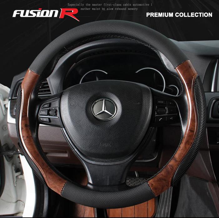 COVER SARUNG STIR SETIR MOBIL WOODEN KAYU KULIT COMFORT GRIP FUSION R - CREAM