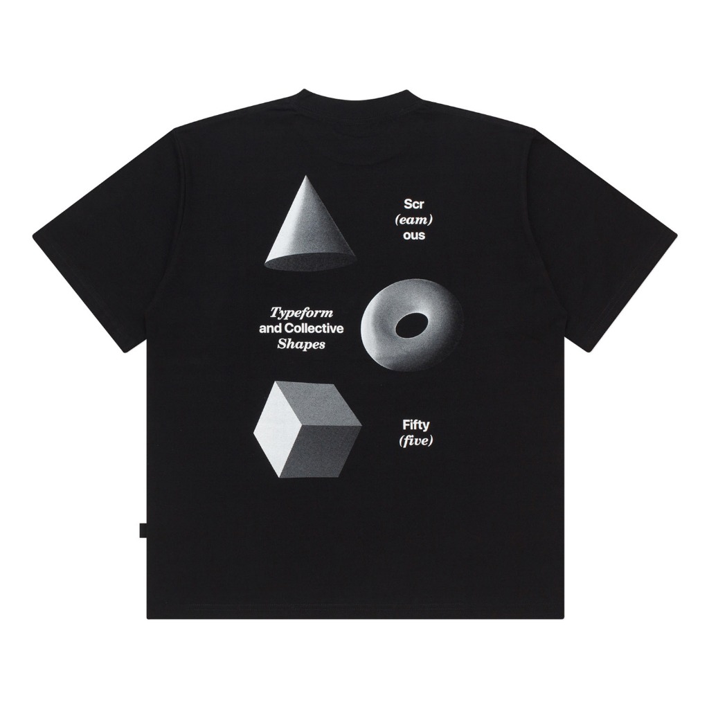 Screamous Kaos T-Shirt BOXY FIT 16s TYPEFORM and COLLECTIVE SHAPES GEOMETRY BLACK