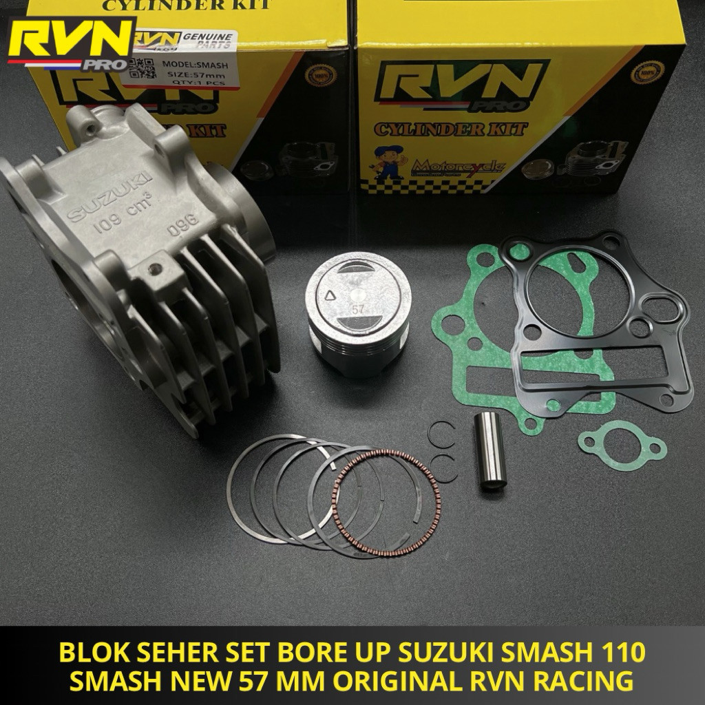 RVN CYLINDER BLOK SEHER BORING KOMPLIT BORE UP SMASH 110 SMASH NEW 57MM 57 MM BLOCK SEHER BORUP FREE PAKING ORIGINAL RVN
