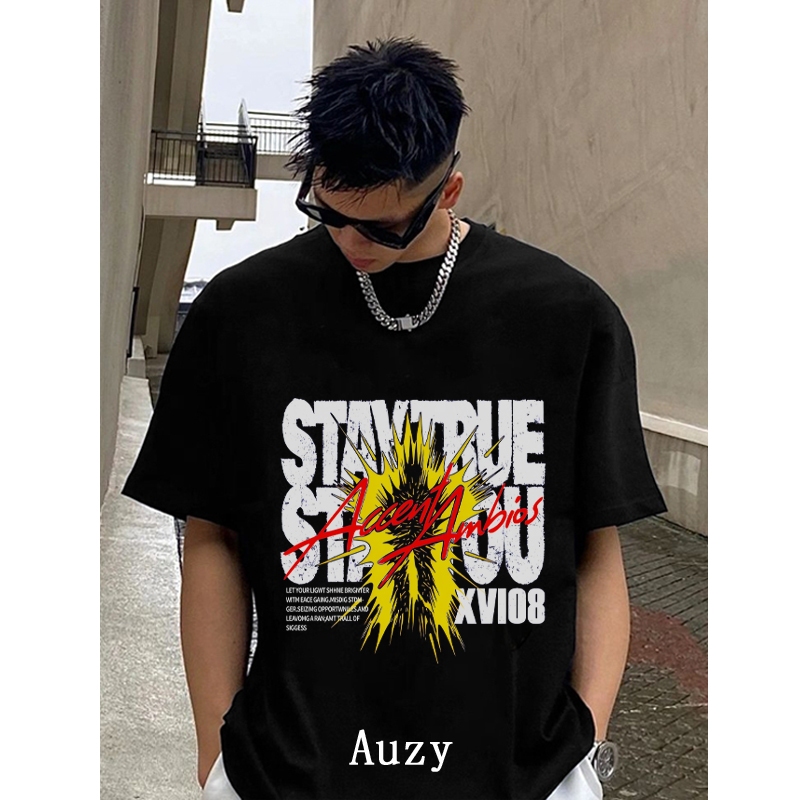 AUZY Boxy fit Kaos Oversized Lengan Pendek Tshirt Stay True Benhur Pria dan Wanita