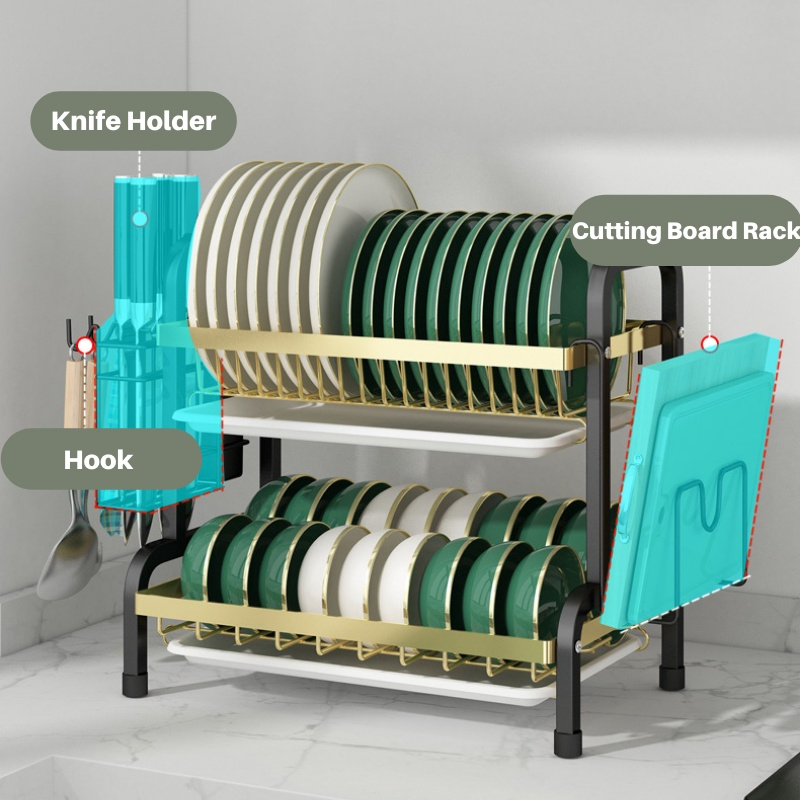 Rak Piring Minimalis Modern Rak Piring Stainless Rak Cuci Piring Wastafel 2 Susun Tingkat Rak Piring Kaca Keramik