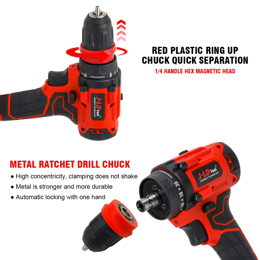 JLD 48VF Mesin bor baterai brushless 10MM bor impact bor cas 80N.M 2Baterai full set