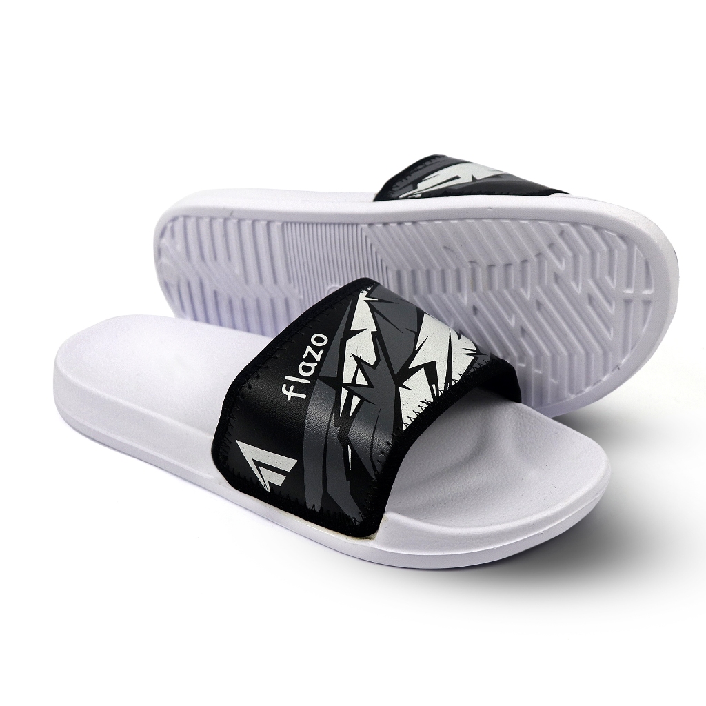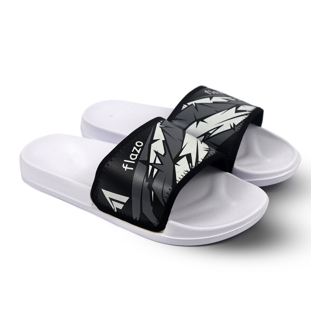Flazo Sandal Pria Sandal Slop Slipper Hitam Putih Sandal Anti Slip Unisex