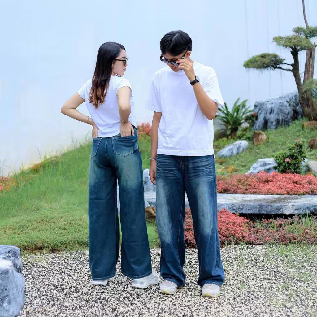 (UNISEX) CELANA JEANS GOMBRONG WISKER CELANA JEANS BAGGY SKENA (VIRAL JEANS WISKER WIDE LEG KOREAN STYLE KEKINIAN KECE