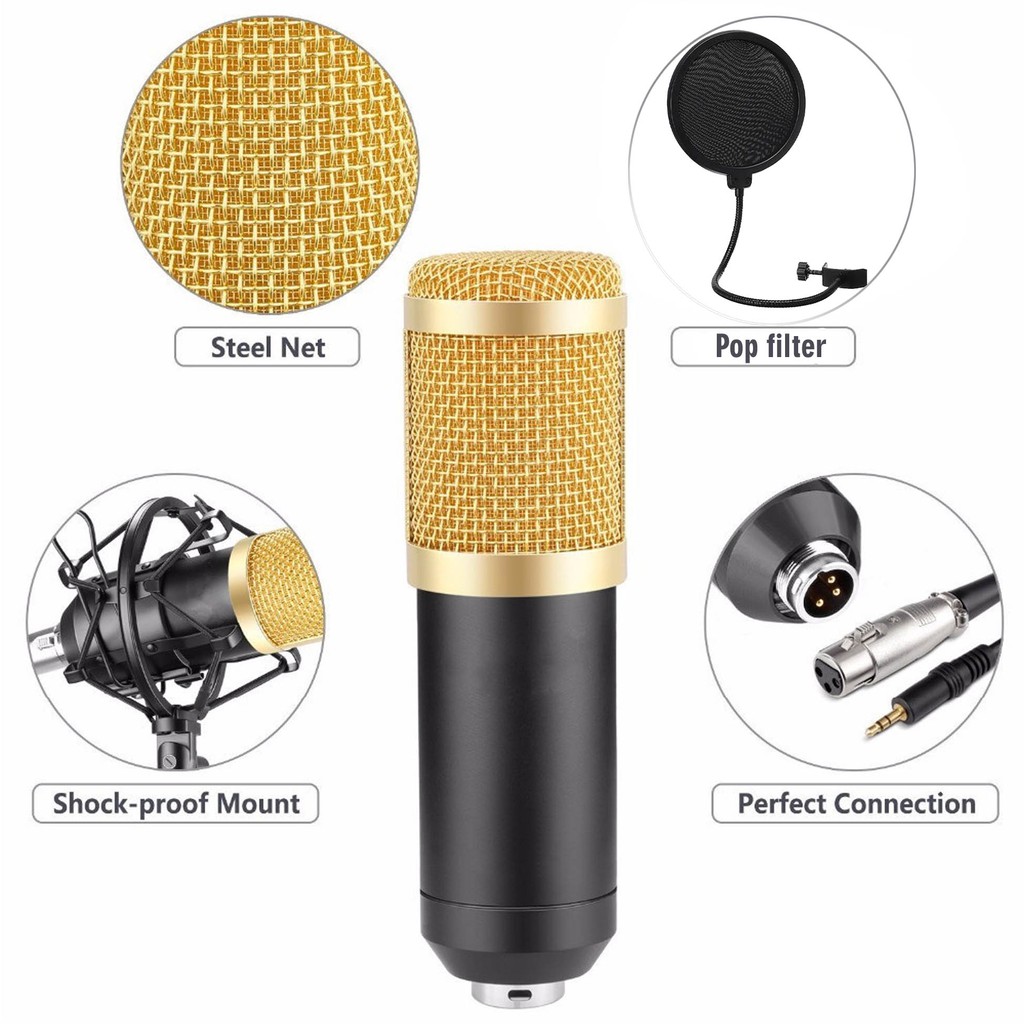 Paket Lengkap Mic Condenser Full Set Microphone Podcast BM 800 + Stand + Pop Filter + SoundCard V8S / V8S+ Bluetooth + Splitter For Podcas