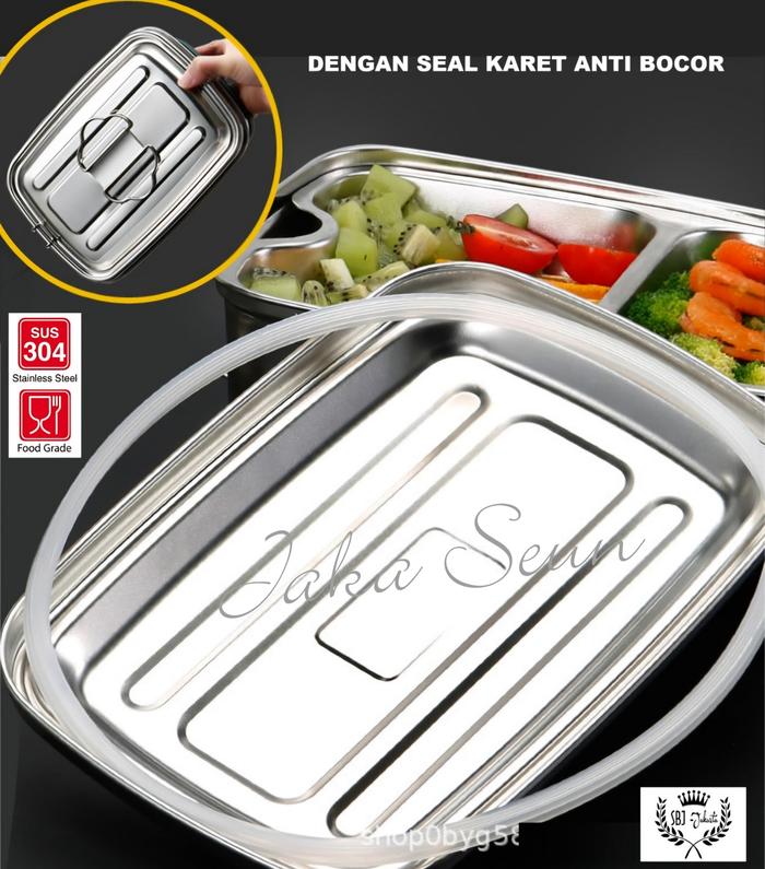 JNZ Kotak makan 2 tingkat FULL stainless steel 304SUS Lunch Box Ukuran besar dengan TAS BEKAL - 1200ml + Tas Bekal