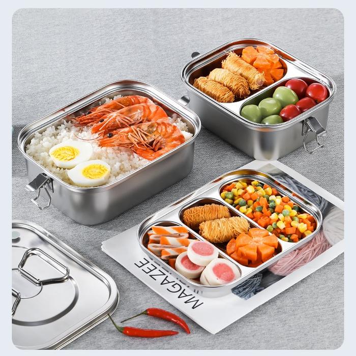 Kotak Makan Bento Stainless Steel 2L – Lunch Box Besar Praktis Anti Bocor - Single