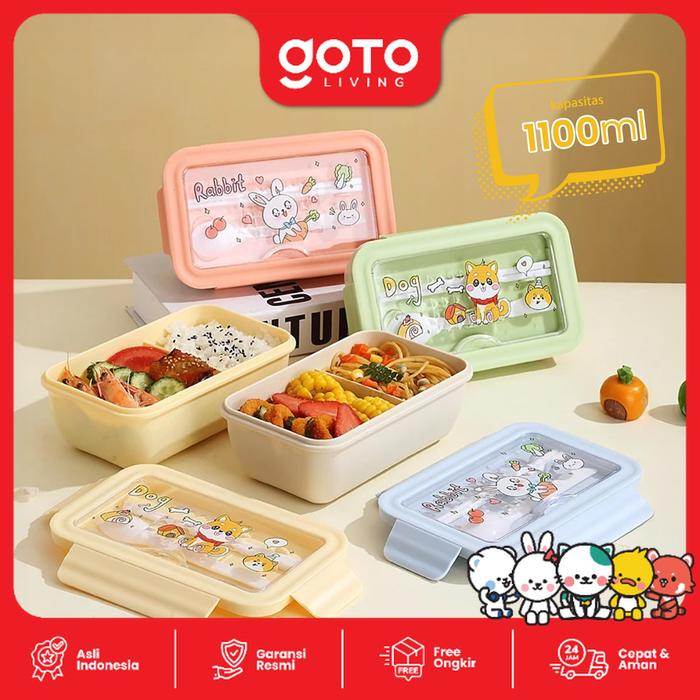Goto [-] Hachi Lunch Box Bento Tempat Bekal Makan Anak Lucu Anti Tumpah - 700ML BLUE