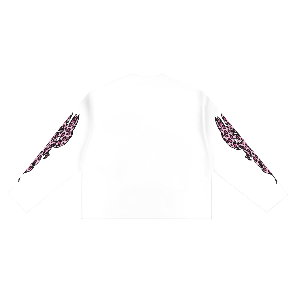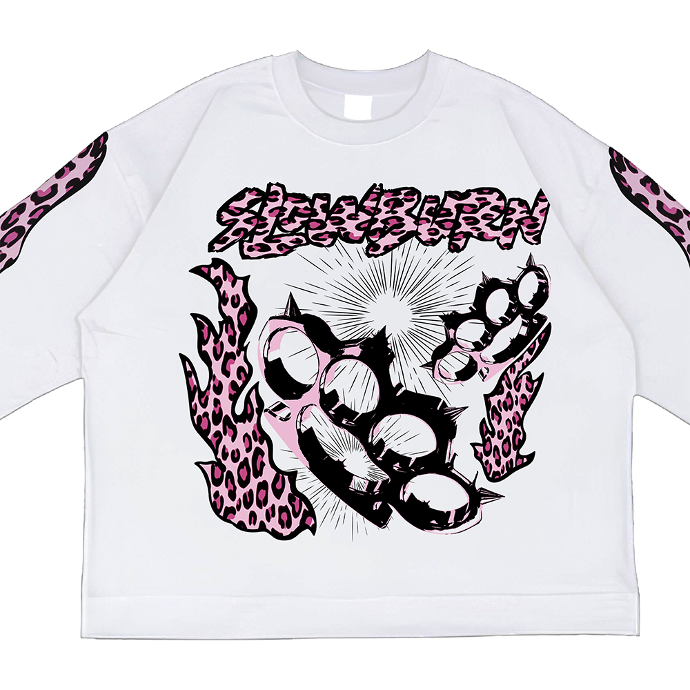 Kaos Boxy Longsleeve Heavyweight 16s Pink Leopard Slowburn White Kaos Skena Lengan Panjang