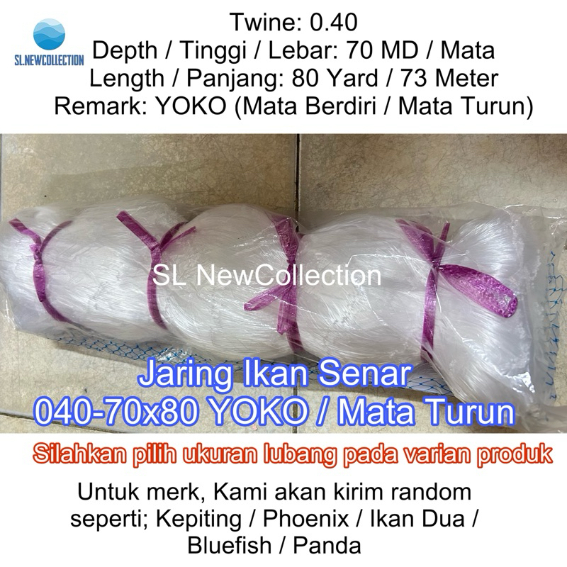 JARING IKAN SENAR 040-70x80 YOKO / JARING IKAN 0.40 / JARING IKAN / JARING PUKAT SENAR