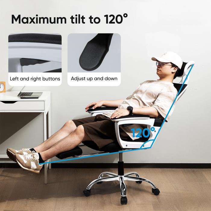 FLASH SALE OFFICE CHAIR KURSI KANTOR KERJA JARING DAN SANDARAN KAKI E4935 PUTIH