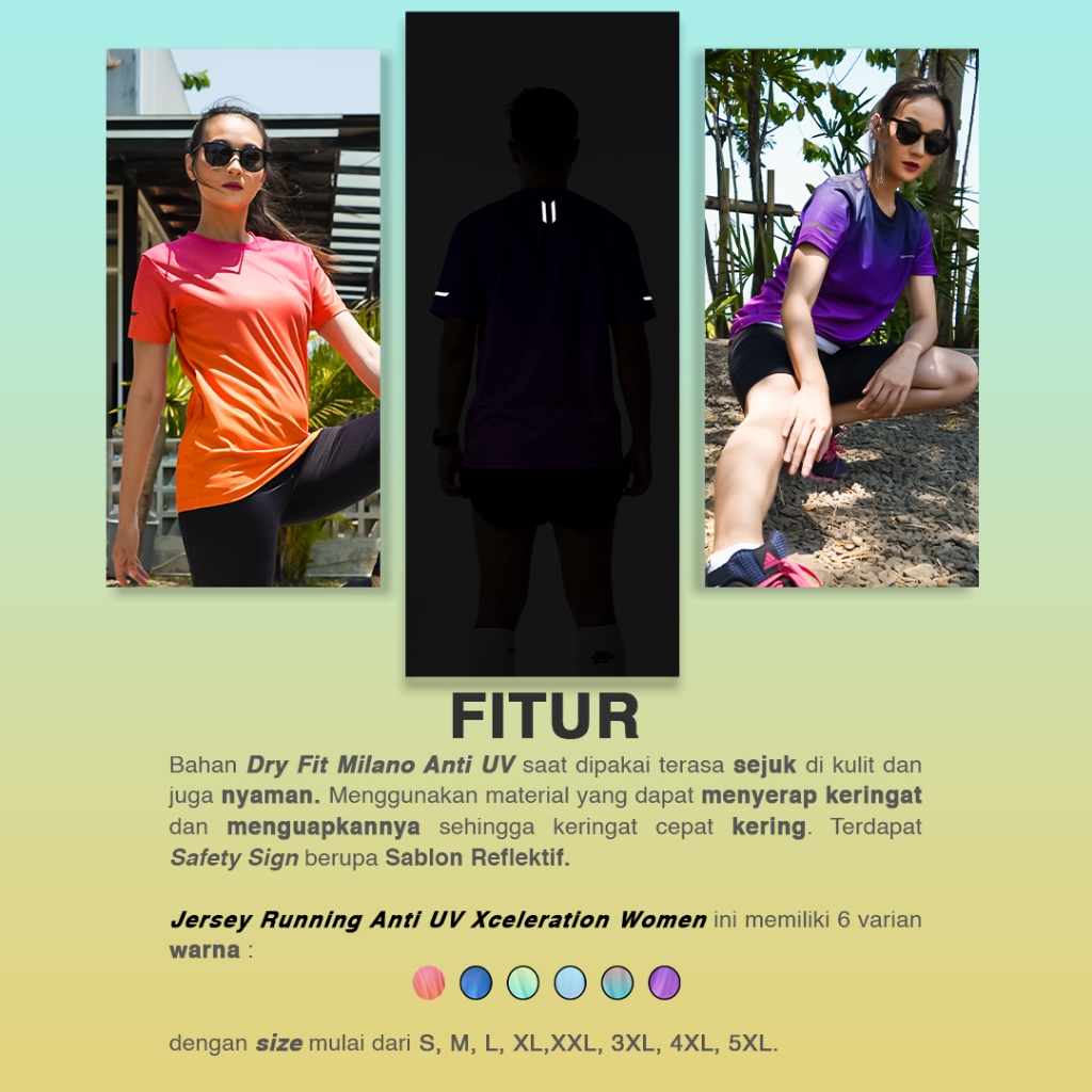 Tiento Baju Olahraga Lari Jersey Running Wanita Anti UV Xceleration