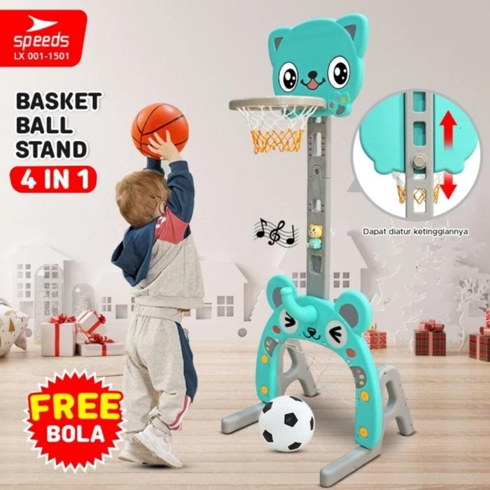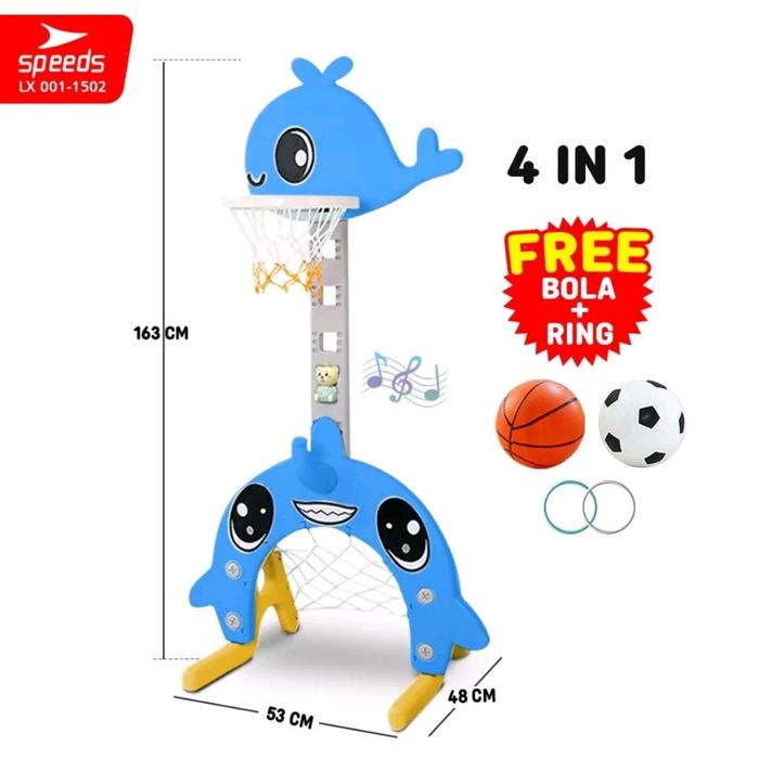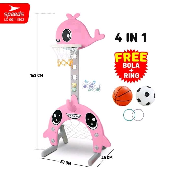 FLASH SALE SPEEDS MAINAN TIANG BASKET 4IN1 RING BOLA GAWANG BOLA ANAK M1502 PINK