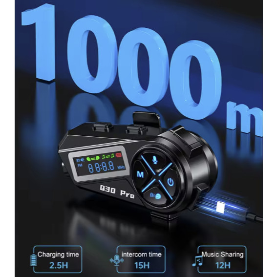 SMARTCOM Q30 PRO Helm Interkom Headset Earphone Bluetooth LED Digital Display Screen Waterproof