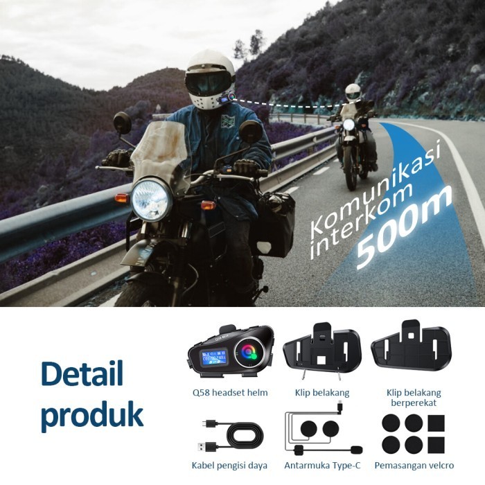 SMARTCOM Q58 MAX Headset Helm Earphone Bluetooth Layar LCD Helmet Interkom Dua Orang