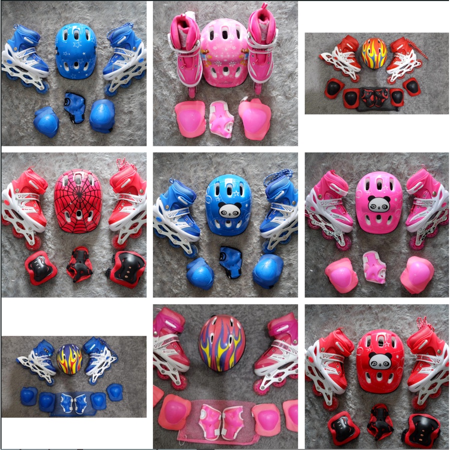 TERBARU Paket sepatu roda anak + Helm Deker gambar API, PANDA, dan KARAKTER