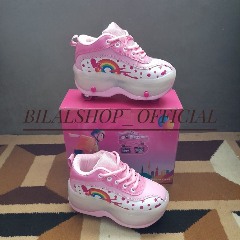 SEPATU RODA ANAK KARAKTER RODA 4 MODEL MOBIL PEMULA FULL MENYALA / SEPATU RODA ANAK KARAKTER 2 IN 1 BONUS KAOSKAKI