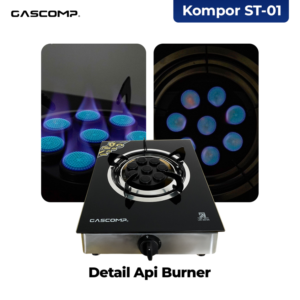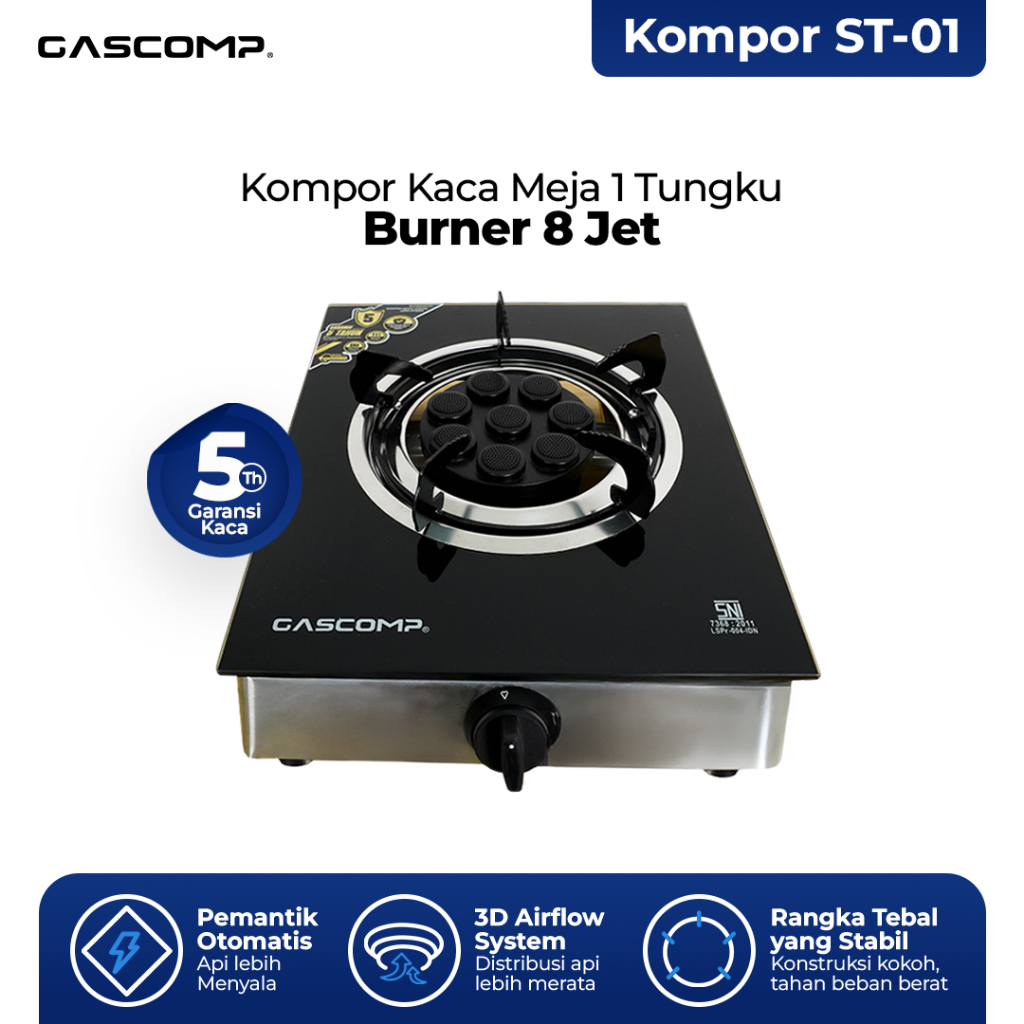 GASCOMP Kompor Gas Meja 8 Jet ST01 | Api Bara Besar Hemat Gas | Kompor 1 Tungku Masak & Panggang Cepat Merata