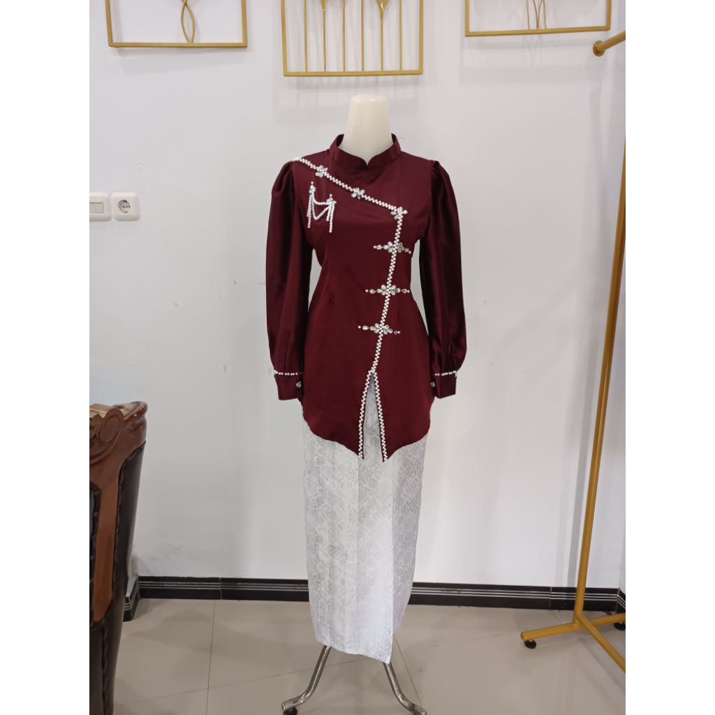 ZAHSY Setelan Kebaya Modern Kurung Melayu One Set Kondangan Wanita Dengan Rok Songket Bridesmaid Wisuda Lamaran