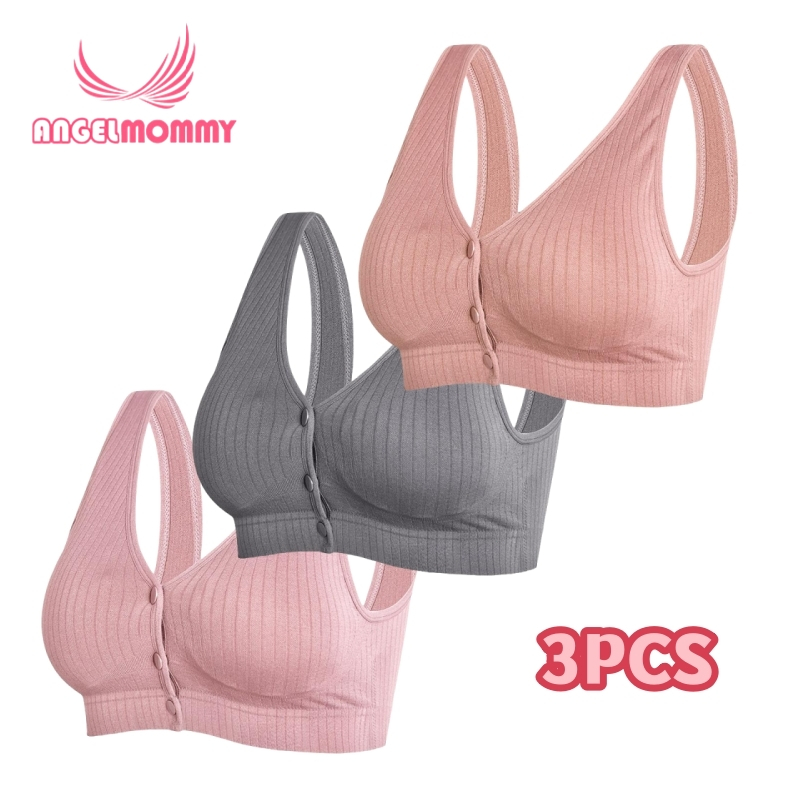 3PCS Nursing Bra Wanita Bra Menyusui Kancing Depan Tanpa Kawat Katun Bh 1018bra