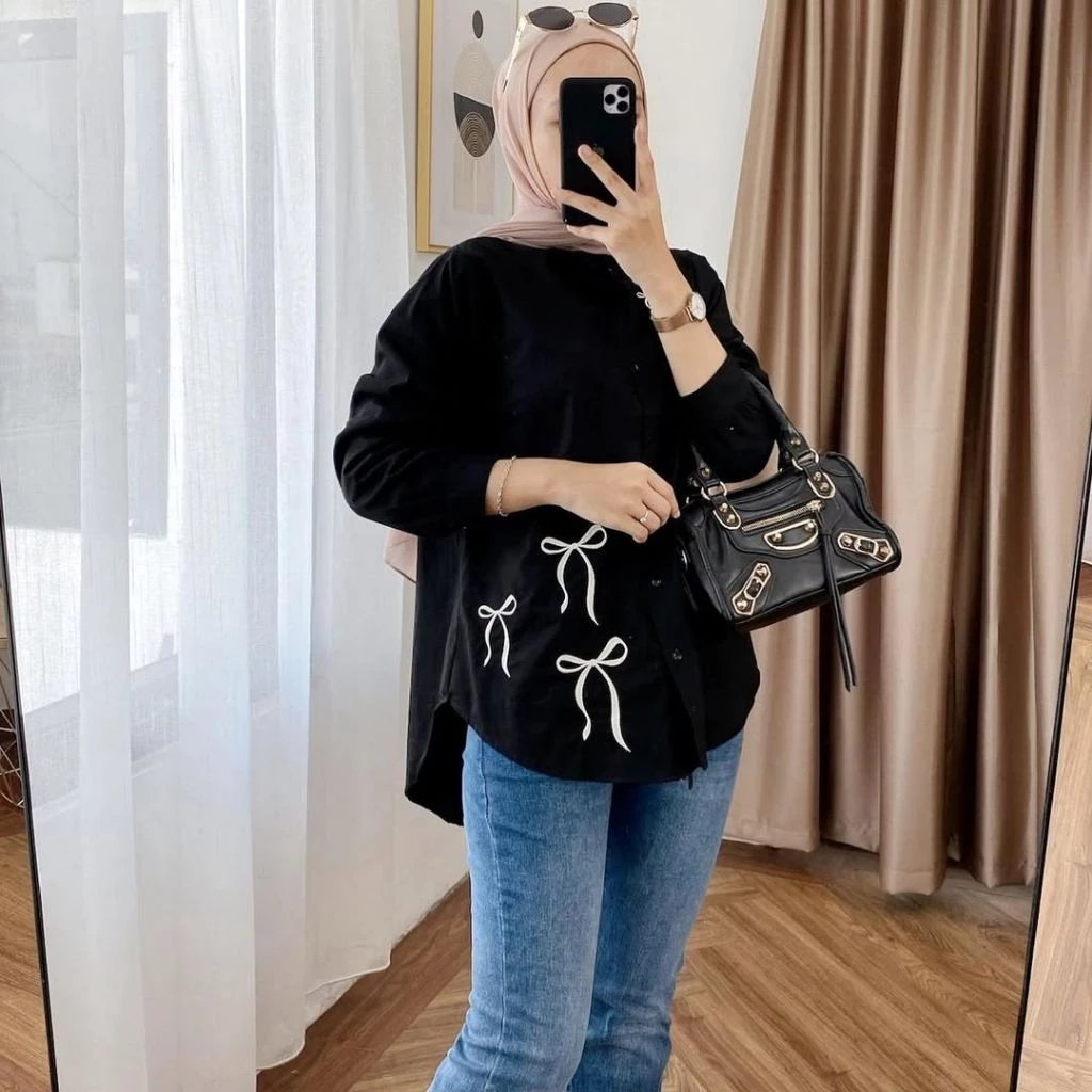 Atasan Wanita Kekinian Kalila Bordir Katun Poplin Series Premium Blouse Wanita Lengan Panjang Korean Style Best Seller