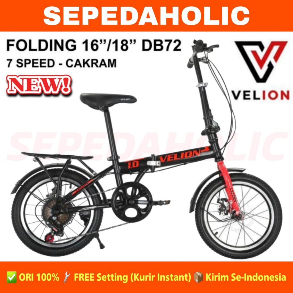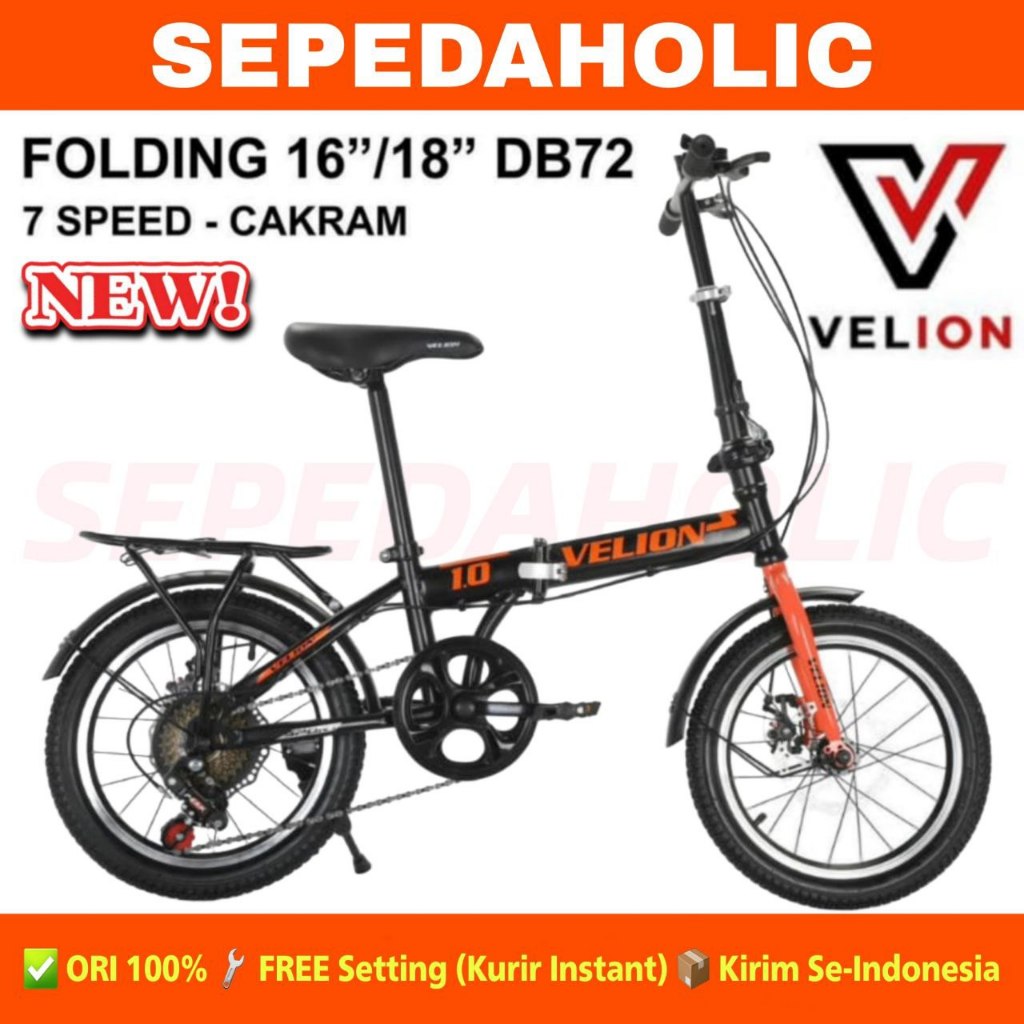 Sepeda Lipat Anak VELION DB72 Ukuran 16 18 20 Inch Rem Cakram 7 Speed Boncengan
