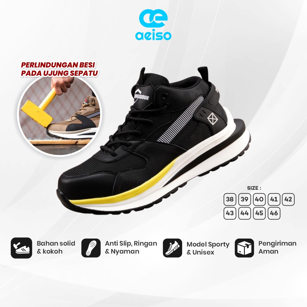 Sepatu Sneakers Safety shoes Sporty casual pria dan wanita ringan ujung ada besi hitam dan coklat