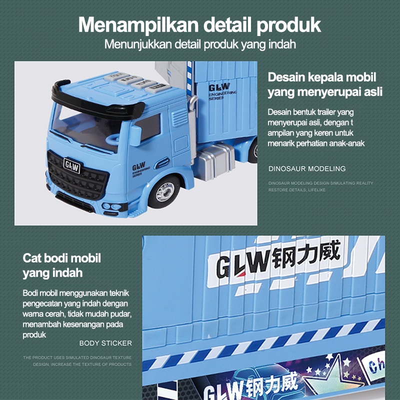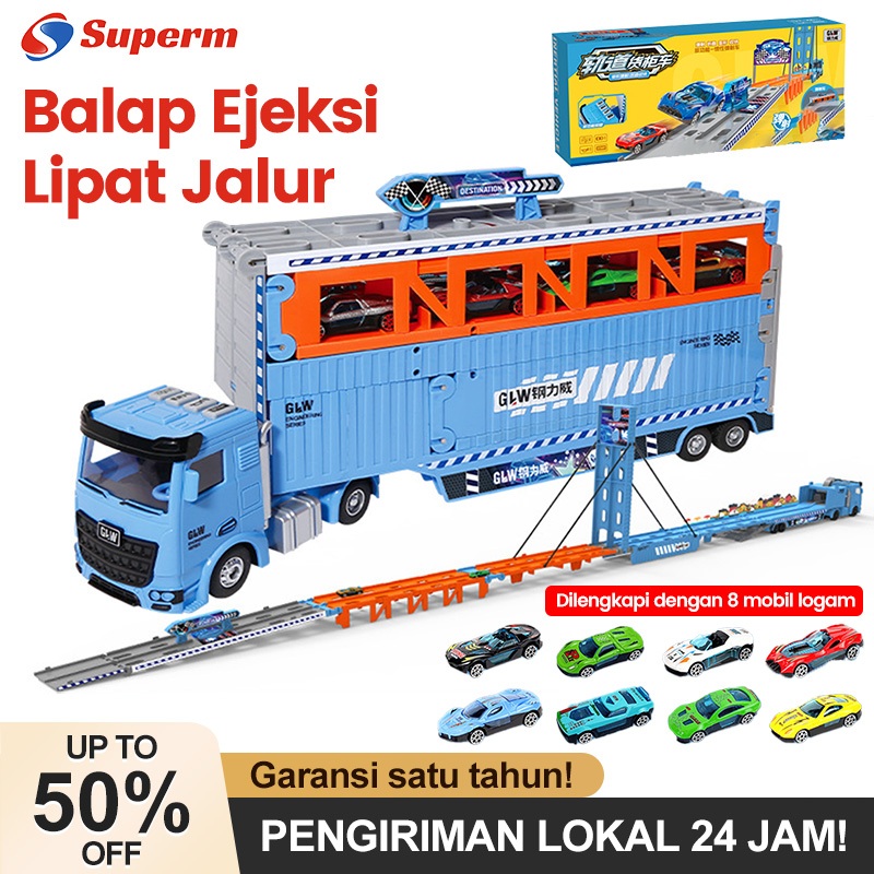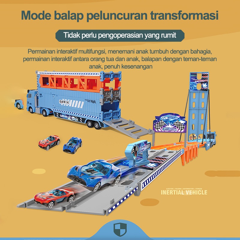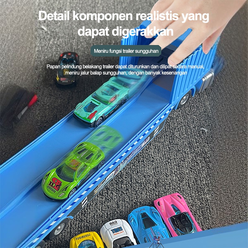 【Kirim delapan mobil paduan】Playset mobil/Hauler Truk dengan Lintasan /Balap Ejeksi Lipat Jalur/Mobil Truk Container Mai