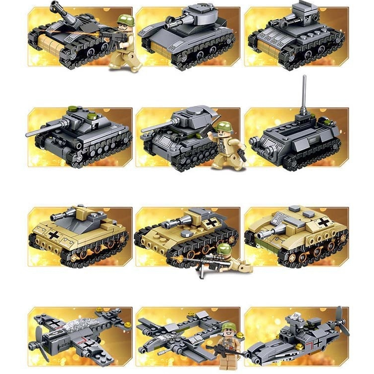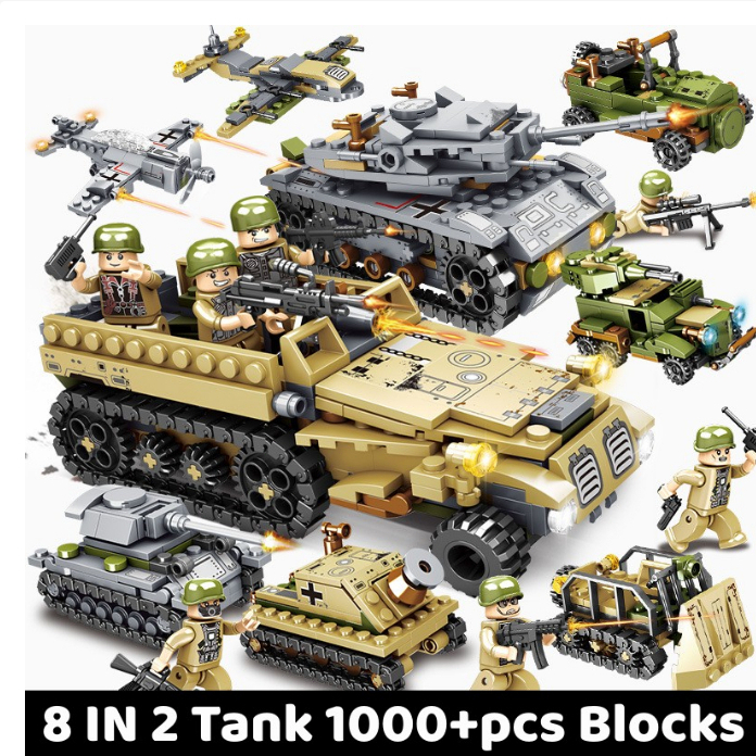 【New Tank Bloks】Mainan Bricks Tentara Blok Bangunan Mobil Militer 1000PCS Truk Pesawat Model Senjata Bata Set Konstruksi