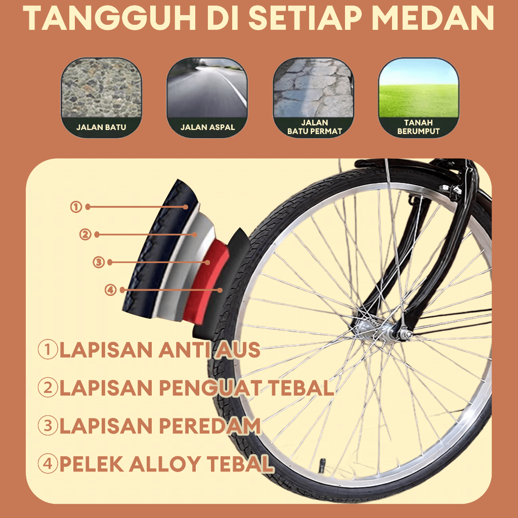 Sepeda Dewasa Kota ALLOY 24/26INCH - Bonus Keranjang & Boncengan,Sepeda Model Ladies,Sepeda Renda, Cocok untuk Remaja Ko