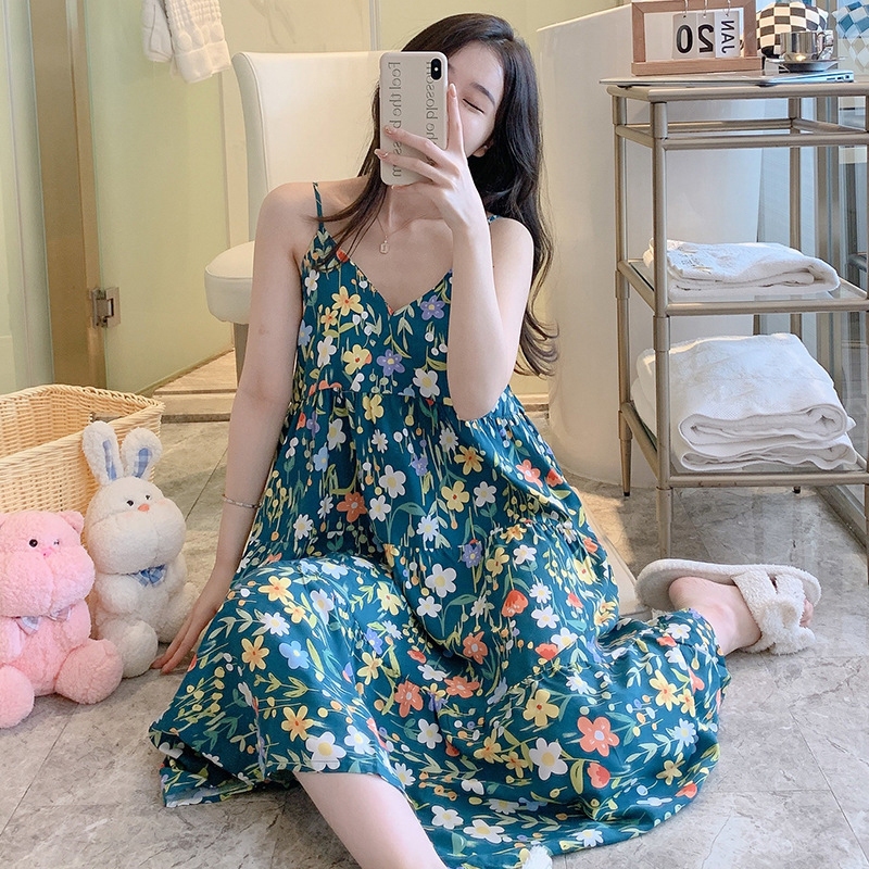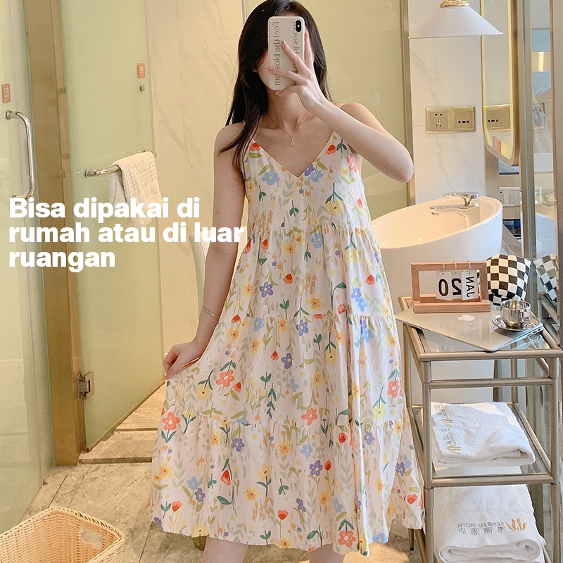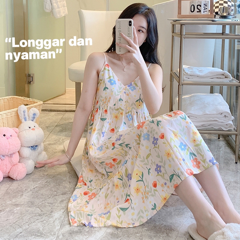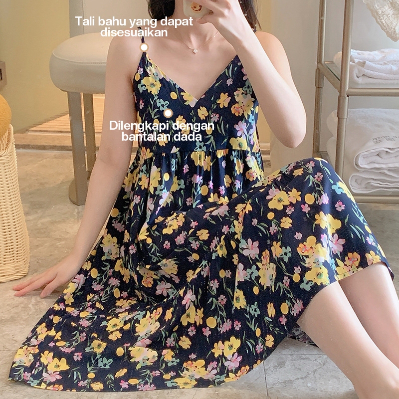 Gadis Kitty Baju Tidur Longgar Panjang Wanita Aun Tidur Rumah Manis Motif Bunga Kecil