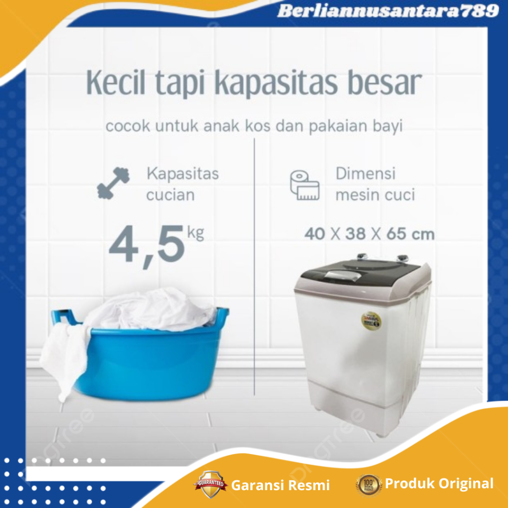 Mesin Cuci Mesin Cuci Portable 4.5 Kg AWM 452A - Mesin Cuci 1Tabung -
