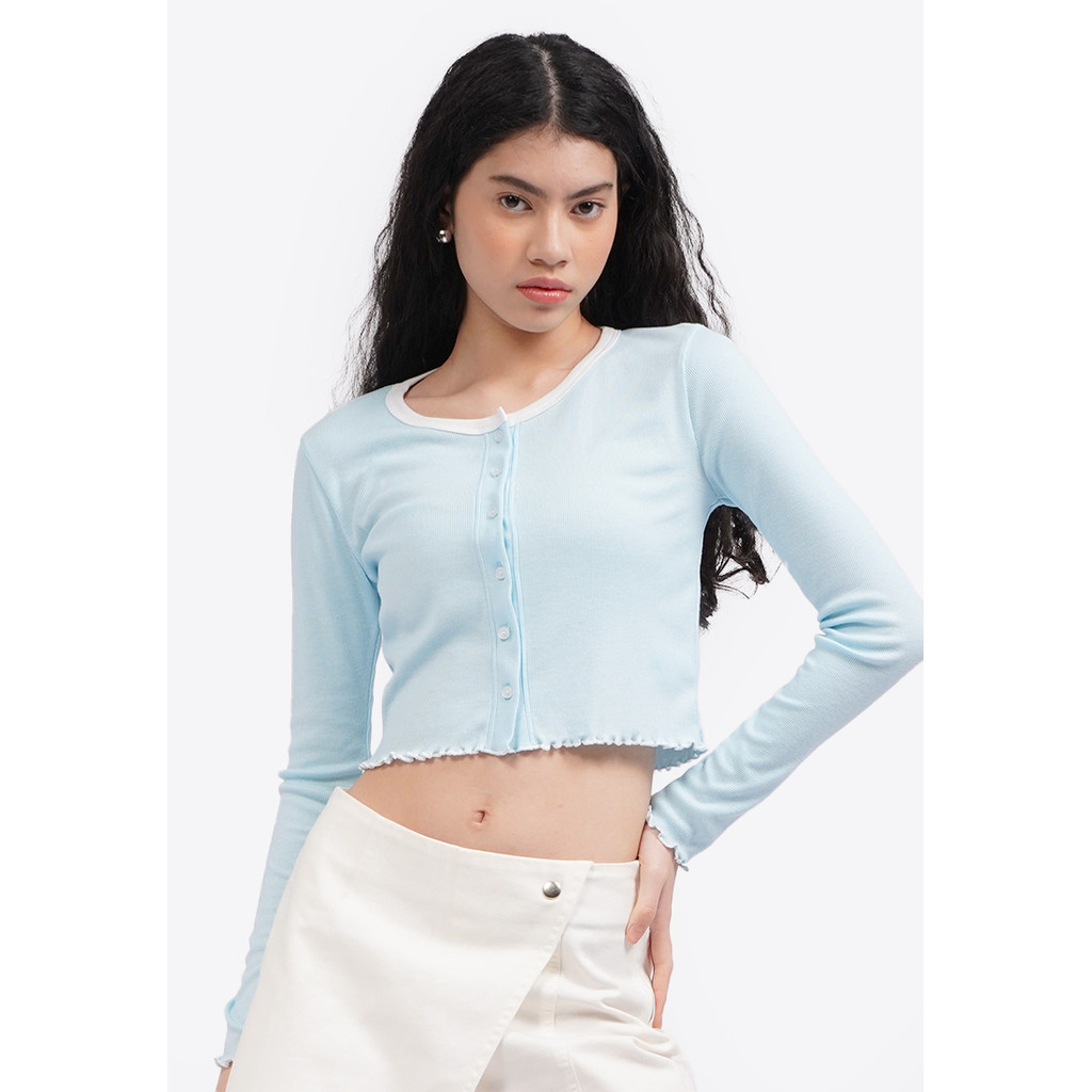 COLORBOX Button Up Long Sleeve Top Lt. Blue